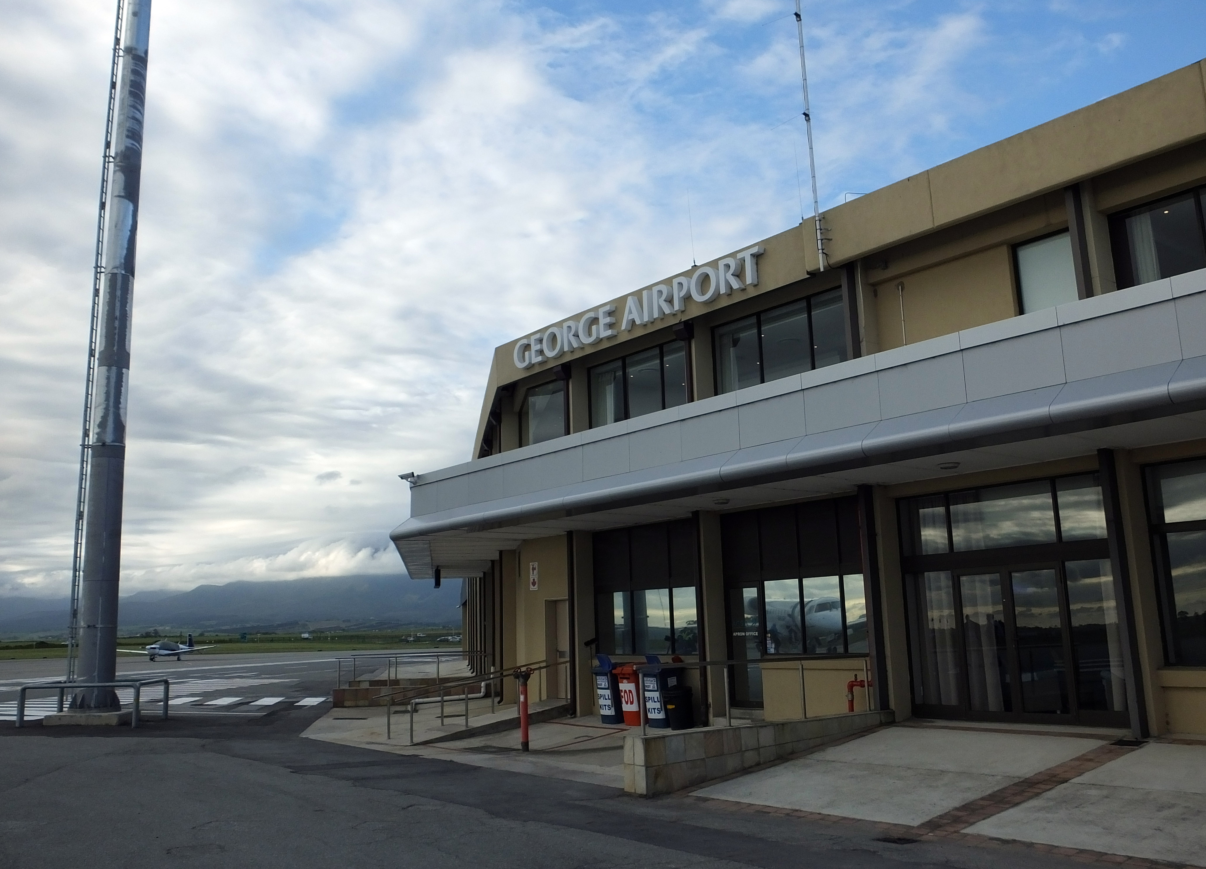 조지 공항(IATA 코드 GRJ)은 시내 중심가에서 약 7km 떨어져 있으며, 케이프타운 국제공항, 킹 샤카 국제공항(더반), 브람 피셔 국제공항(블룸폰테인) 및 OR 탐보 국제공항(요하네스버그)으로 가는 정기 항공편이 운항된다.
