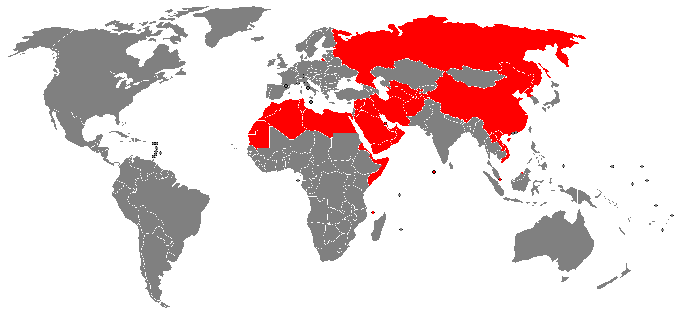 2018년 월드 워치 리스트는 북한, 에리트레아, 아프가니스탄, 미얀마, 소말리아, 수단, 파키스탄, 리비아, 이라크, 예멘, 인도, 이란을 상위 10개국으로 선정했다.[116] 이 중 북한과 에리트레아는 기독교와 이슬람교가 국가에 의해 통제되며, 나머지는 주로 비기독교 국가이다. 에리트레아[117]와 멕시코[118]와 같은 기독교 국가에서 서로 다른 기독교 집단이 무슬림 국가보다 더 자주 괴롭힘과 박해를 받기도 하지만, 그 수는 더 적다.[119]