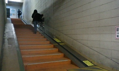 층별 주차장에서 자전거 또는 오토바이를 밀고 다니며 상하층으로 오르내리기 위한 설비이다. 경사로, 경사로가 있는 계단, 반송 컨베이어가 설치된 계단, 오토바이용 엘리베이터 등이 있다[51].