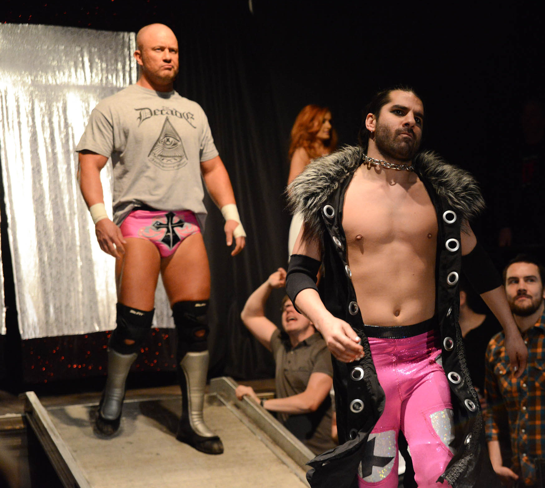 2014년 9월 Chikara에서 The Flood의 일원으로서 제이콥스 (오른쪽)와 볼가 (왼쪽), 에디 킹스턴 (아래)