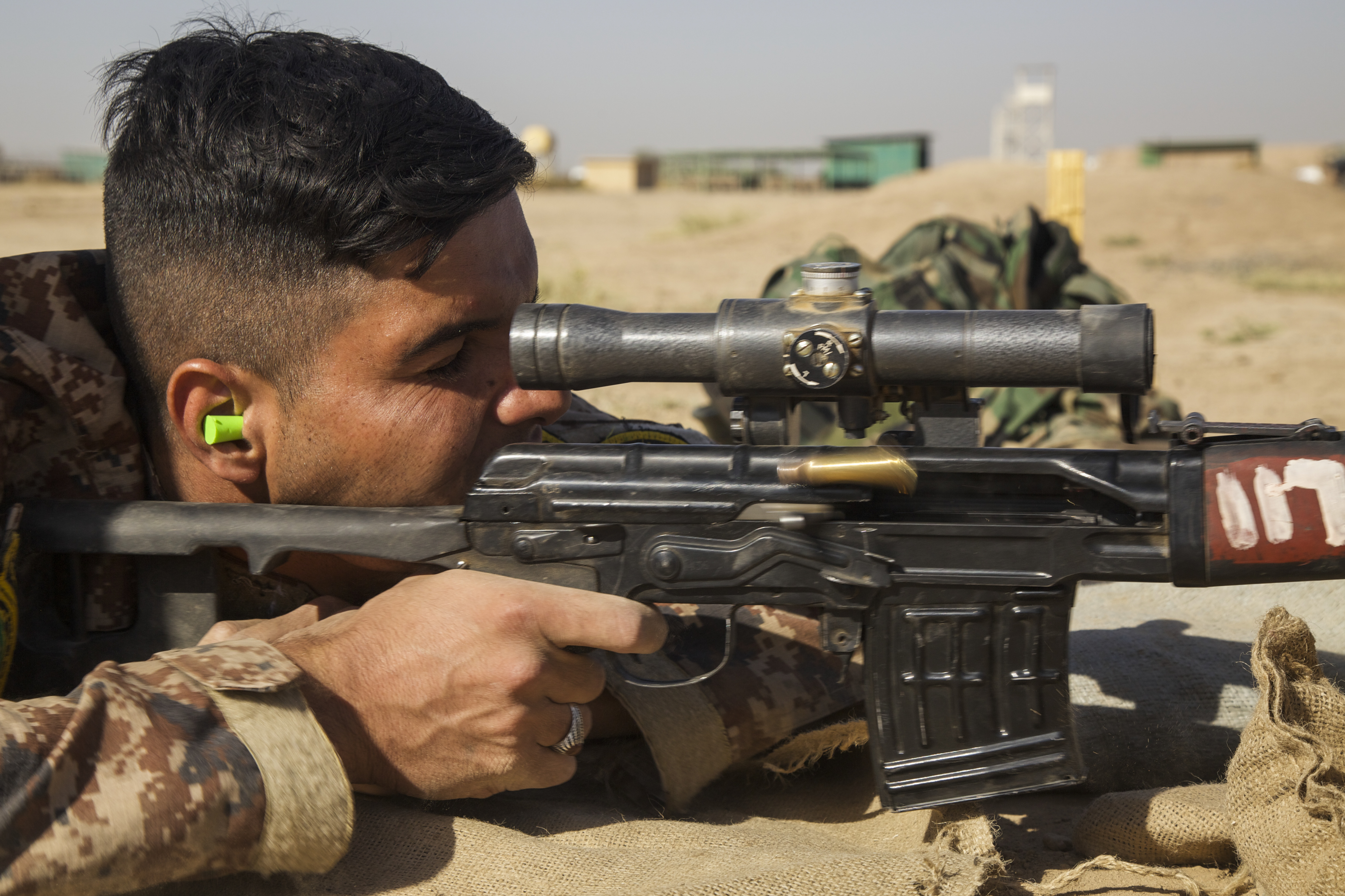 이라크 육군 병사가 SVD의 POSP 조준경으로 조준하고 있다.
