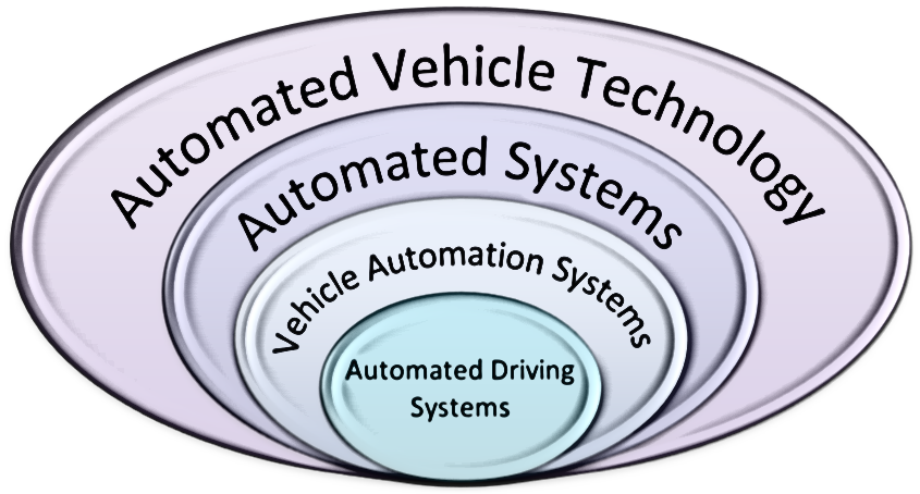 차량 자동화 시스템은 여러 개별 자동 시스템들이 협력하여 작동하는 통합 패키지이다. 자율 주행은 운전자가 운전 능력(감시, 대리, 행동 기능)을 차량 자동화 시스템에 위임하는 것을 의미한다. 운전자는 언제든 경계하고 행동할 준비가 되어 있을 수 있지만, 자동화 시스템이 모든 기능을 제어한다.[31]자율 주행 시스템은 대부분 조건부이다. 즉, 자동 시스템은 자율 주행이 가능하지만 일반적인 작동 중 발생하는 모든 조건에 대응할 수 있는 것은 아니다. 따라서 자율 주행 시스템을 시작하려면 인간 운전자가 기능적으로 필요하며, 운전 조건이 시스템의 능력 범위 내에 있는 경우 시작할 수도 있고 하지 않을 수도 있다. 차량 자동화 시스템이 모든 운전 기능을 인계하면 인간은 더 이상 차량을 운전하지 않지만, 차량 운전자로서 차량의 성능에 대한 책임을 계속 진다. 자동화된 차량 운전자는 자동화 시스템이 작동하는 동안 차량의 성능을 적극적으로 감시할 필요는 없지만, 시스템의 자동화 조건이 제한적이기 때문에 운전자는 프롬프트가 표시된 후 수 초 이내에 운전을 재개할 수 있어야 한다.[31]