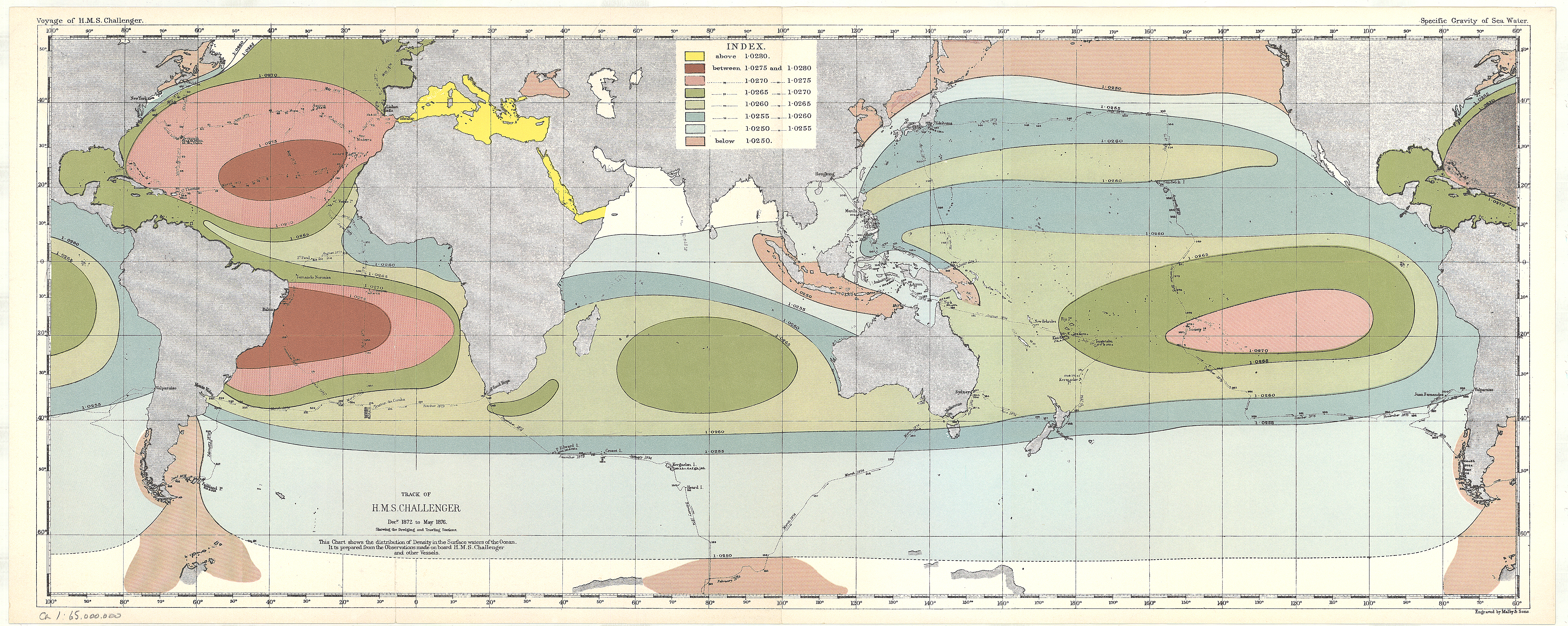 탐사 경로는 전 세계의 대양을 아우르는 광범위한 여정이었다. 주요 경로는 다음과 같다.