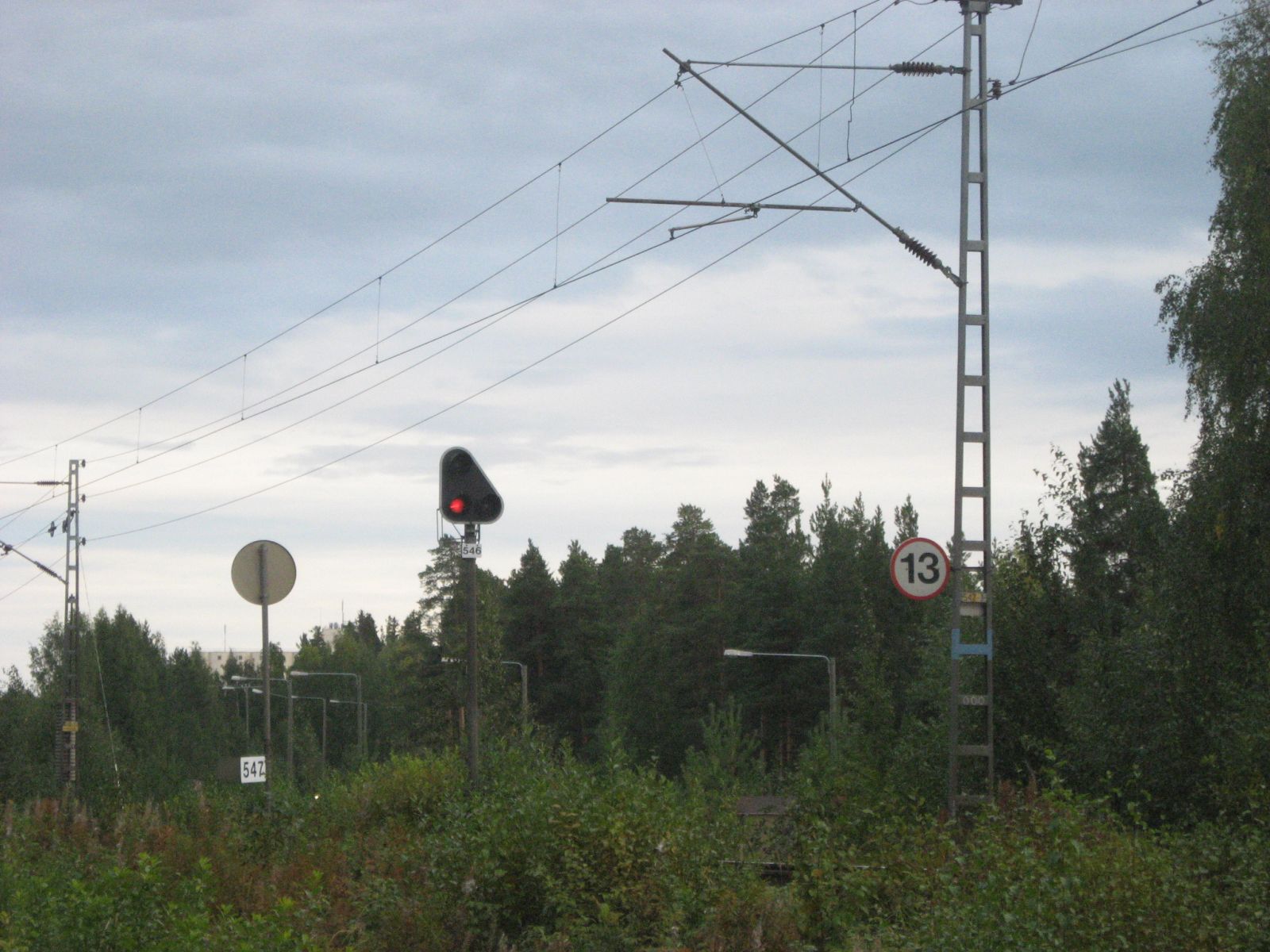 핀란드 이살미 547km 지점의 블록 신호와 130km/h 속도 제한
