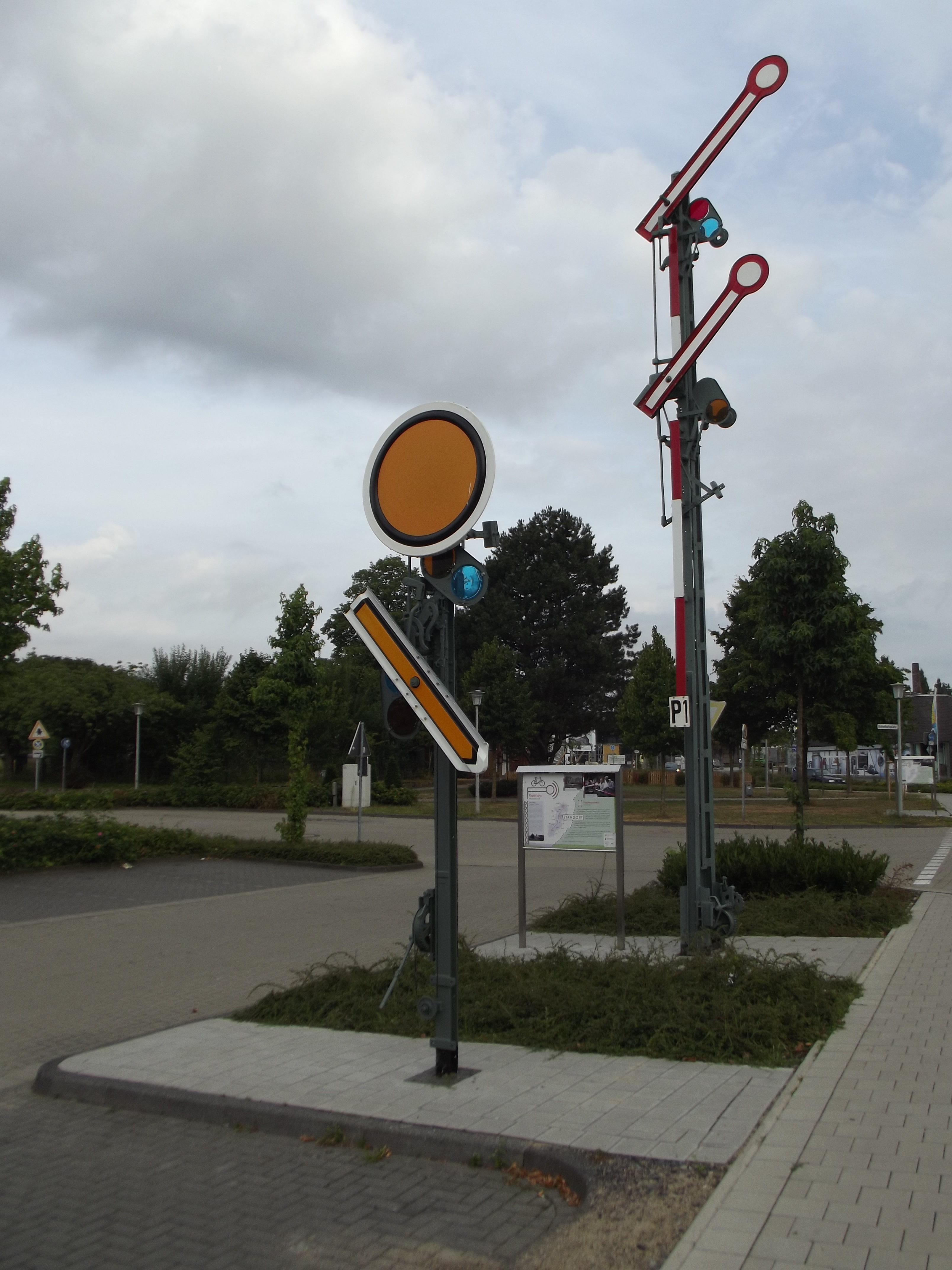 독일 슈타인푸르트의 기차역에 전시된 전통적인 기계식 신호기