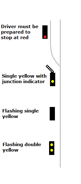 [4] 웹사이트 Online Rulebook: Signals, Handsignals, Indicators and SignsHandbook RS521 Section 2.5 "Flashing yellow aspects" https://web.archive.[...] RSSB