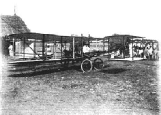 자코모 단젤리스(Giacomo D'Angelis)와 1910년 도시 최초 비행 당시 그의 복엽기