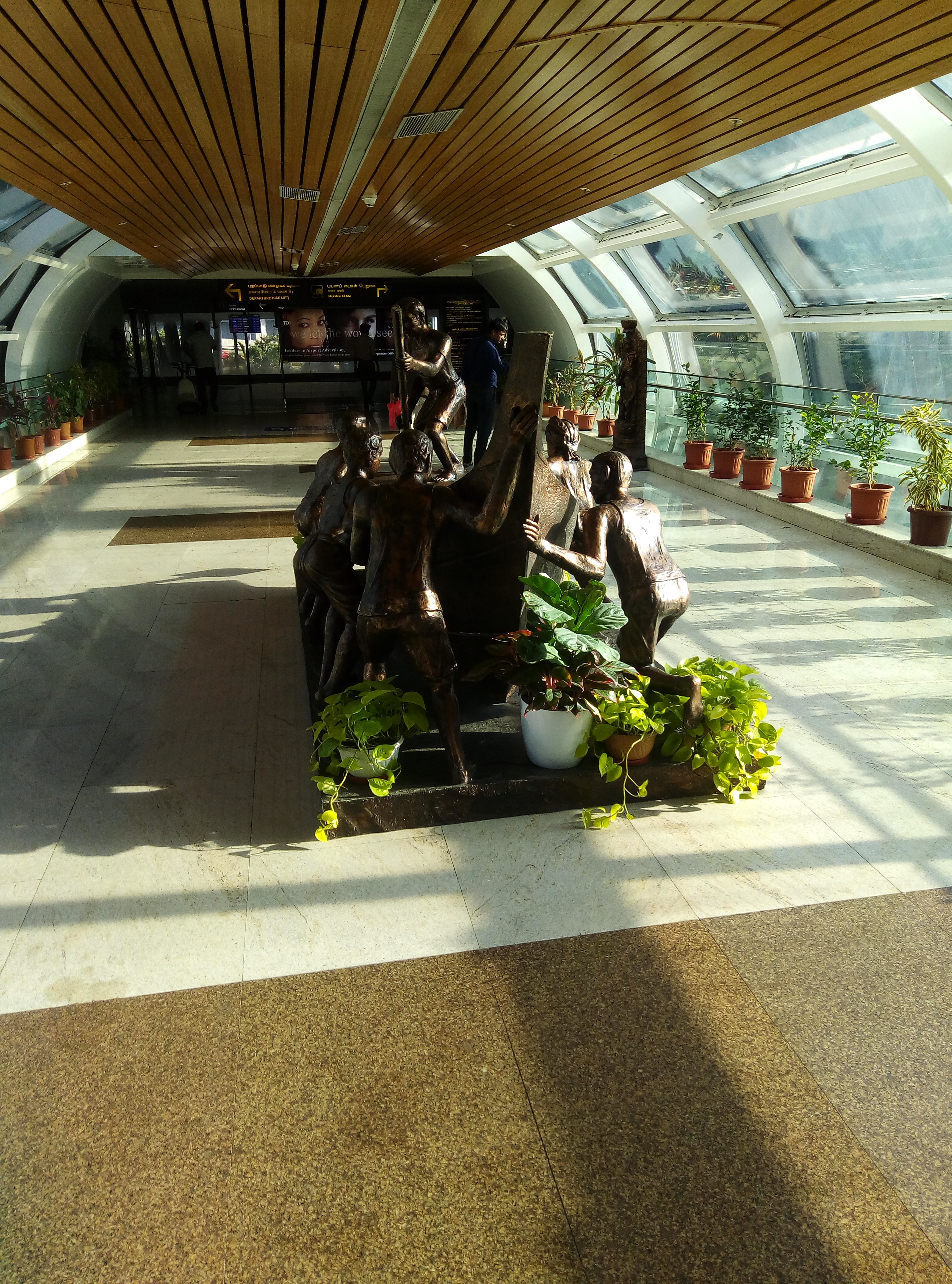 새 터미널 디자인은 타밀 문화에서 영감을 받았다. 건물 외관은 힌두 사원(Hindu temples)의 드라비다 건축(Dravidian Architecture) 양식을 따랐고, 지붕은 바라타나티얌(Bharatanatyam) 무용수의 사리(sari) 주름에서 영감을 얻었다. 바닥과 천장에는 콜람(Kolam) 패턴과 다채로운 벽화가 장식되어 있다.[76] 터미널 외부에는 1730kg 무게의 나치아르코일 램프(Nachiarkoil lamp)가 설치되어 있다.[77]