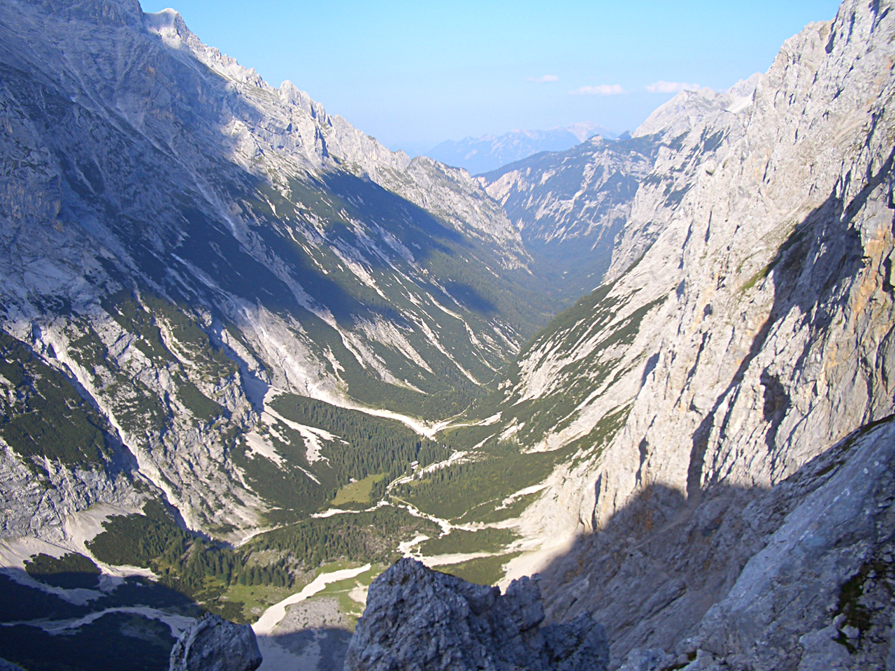 더 쉬운 경로는 에어발더 알름(Ehrwalder Alm)을 경유하여 가터(Gatterl)라는 작은 고개를 지나 노르 산장에서 라인탈 경로에 합류하는 것이다.