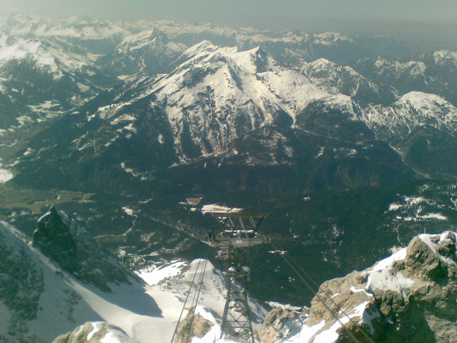 헬렌탈(Höllental) 경로더 인기 있지만 더 어려운 경로는 헬렌탈("지옥 계곡")을 통과하는 것이다. 이 경로는 7~8시간이 소요된다.[10][62] 등반은 그라이나우의 함머스바흐(해발 758m)에서 시작하여, 함머스바흐 시내를 따라 헬렌탈 협곡(Höllentalklamm)을 통과한다. 이 협곡은 1902년부터 1905년까지 건설되었으며, 총 길이 1026m 중 288m는 12개의 터널로 이루어져 있다. 건설 비용은 총 57,000 금 마르크였으며, 매년 약 6만 명이 이곳을 통과한다.[61] 협곡은 슈탕겐슈타이그(Stangensteig) 길로 우회할 수도 있다. 협곡을 지나면 헬렌탈안거 산장(Höllentalanger Hut, 1381m)에 도착하며, 이곳에서 식사나 숙박이 가능하다. 산장 위로는 암벽에 고정된 강철 핀으로 "브레트(Brett)" 구간을 건너고, "그뤼넨 부켈(Grünen Buckel)"을 지나 헬렌탈페르너(Höllentalferner) 빙하에 도달한다. 여름에는 빙하에 눈이 거의 없어 아이젠이 필요할 수 있으며, 얼음이 녹아 암석과의 간격이 벌어지는 랜드클루프트(Randkluft) 구간은 더 까다롭다. 빙하를 지나면 클라이밍 코스(Klettersteig)가 시작되는데, 철 사다리와 계단의 도움을 받아 벽을 오르며, 이 구간에서는 클레터슈타이그 장비가 권장된다. 이르머샤르테(Irmerscharte)를 지나 정상에 도달한다. 이 경로는 총 2204m의 고도를 오른다.[10][62] 아이브제에서 리펠슈타이그(Riffelsteig) 길을 통해 헬렌탈 경로의 "브레트" 구간 전에 합류하는 방법도 있다.