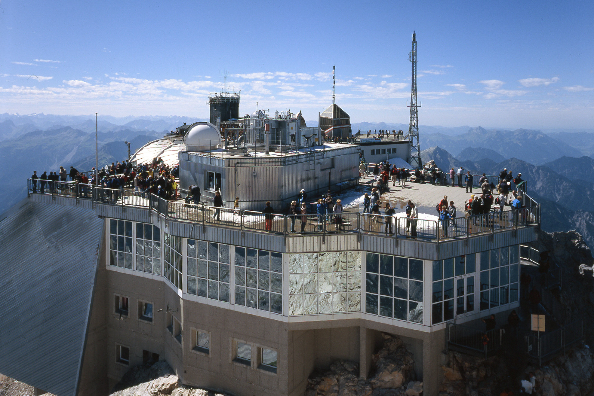 추크슈피체 정상에는 독일 알프스 협회(Deutscher Alpenverein)가 건설한 산장인 ''뮌히너 하우스''(Münchner Haus)가 있다. 또한 100년 이상 된 기상 관측소가 있으며, 현재는 세계 대기 감시(Global Atmosphere Watch)를 위한 데이터도 수집하고 있다.