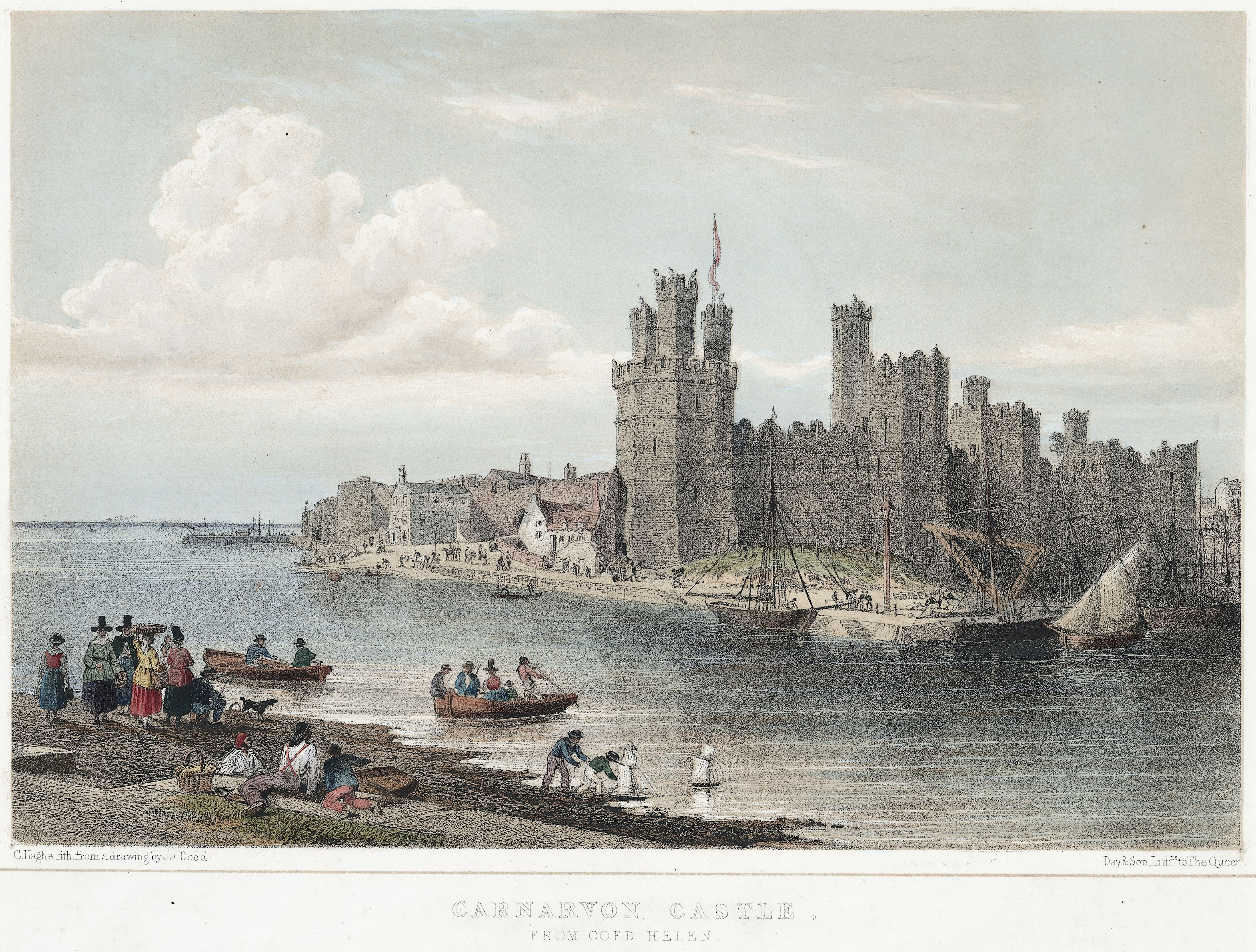 1283년, 에드워드 1세는 일련의 성과 성벽으로 둘러싸인 마을을 건설하여 웨일스 정복을 완료했다. 새로운 석조 카나번 성의 건설은 캠페인이 끝나자마자 시작된 것으로 보인다.[22] 에드워드의 건축가인 세인트 조지 제임스는 이 성의 모델을 콘스탄티노플 성벽으로 삼았을 가능성이 있으며, 이 도시의 전설적인 연관성을 알고 있었을 것이다. 에드워드의 넷째 아들인 카나번의 에드워드, 즉 잉글랜드의 에드워드 2세는 1284년 4월에 이 성에서 태어났으며 1301년에 웨일스 공이 되었다.[78] 16세기에 기록된 이야기에 따르면, 새로운 왕자가 "그[그는] 웨일스에서 태어났고 영어 한 마디도 할 수 없었다"는 전제로 웨일스 원주민들에게 제안되었지만, 이를 뒷받침하는 당시의 증거는 없다.[23]
