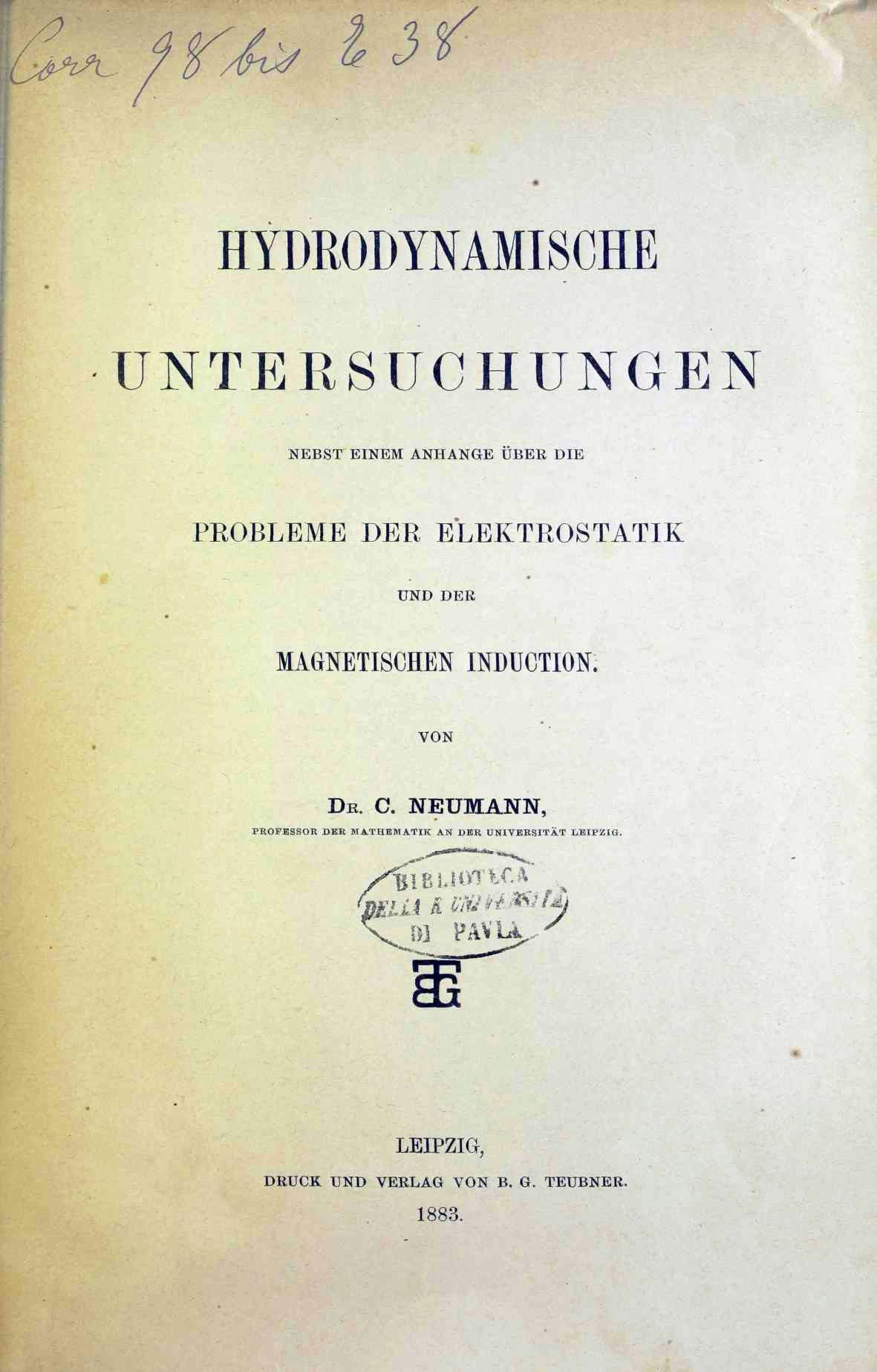 - 1883년: 유체역학 연구/Hydrodynamische Untersuchungende, Benedictus Gotthelf Teubner, 라이프치히