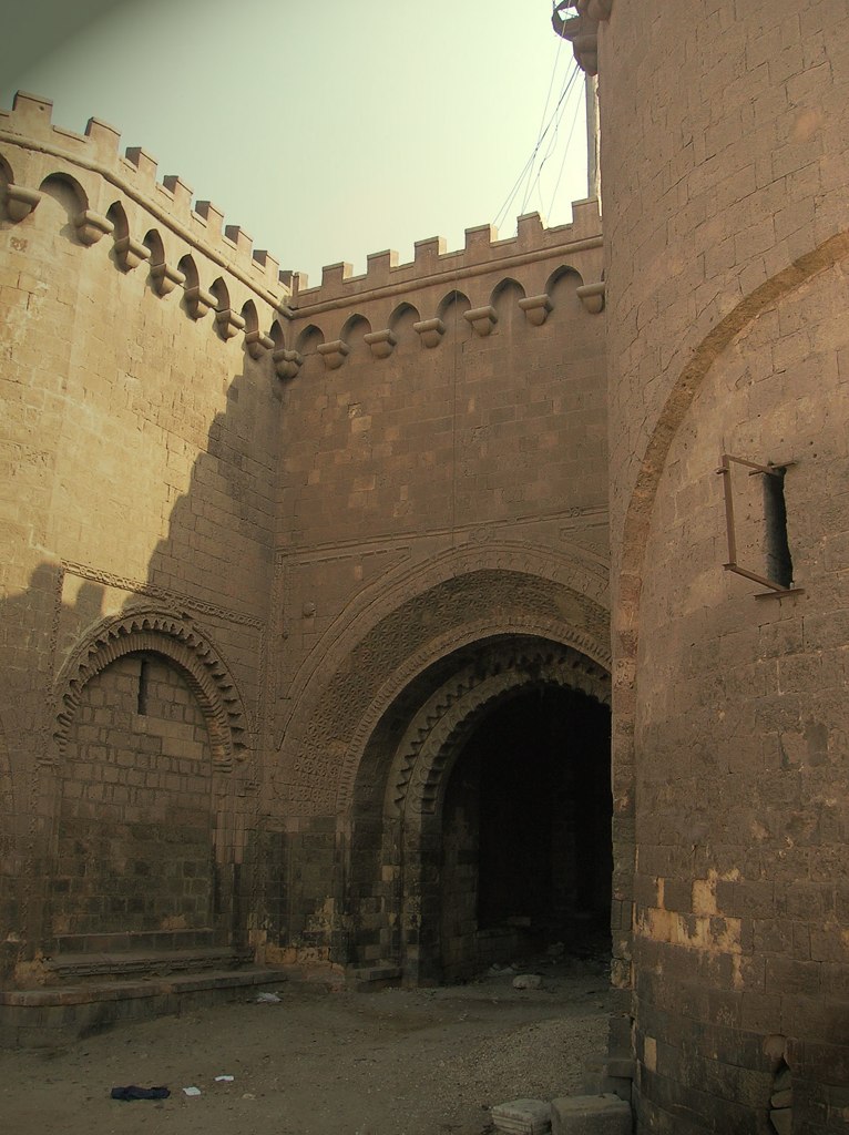 현재까지 남아있는 살라딘 시대의 유일한 성문은 '밥 알-무다라지'(Bab al-Mudarraj)이다. 이 문은 북쪽 구역 성벽을 따라 하렘 궁전(현 국립 군사 박물관)과 후대에 지어진 '밥 알-자디드'(Bab al-Jadid, "새로운 문") 사이에 위치한다. 원래 성채의 정문이었으나, 후대의 건축물들에 가려져 지금은 눈에 잘 띄지 않는다.[3] 문의 이름은 성채 아래 도시에서 문으로 이어지는 돌계단('다라지')에서 유래했다.[4] 아이유브 시대 군사 건축의 특징인 구부러진 입구 구조를 가지고 있으며,[10] 문 내부의 돔형 천장에는 후대인 1310년 알-나시르 무하마드 술탄 시대에 그려진 비문이 남아있다.[10][9] 이 문에서는 성채 완공 시기를 1183년-1184년으로 기록한 기초 비문이 발견되기도 했다.[3][4]