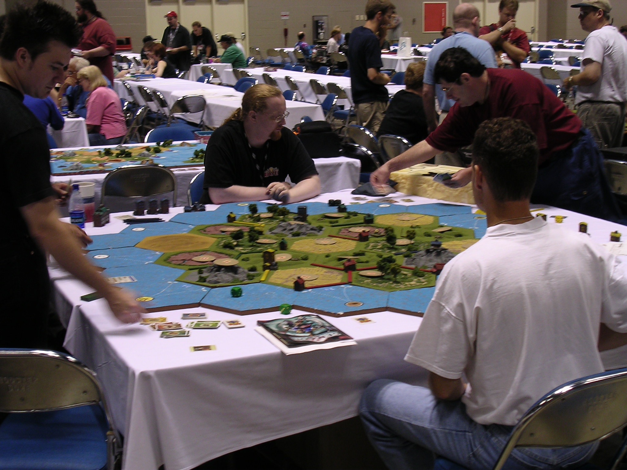 카탄 섬은 육각형 타일로 구성된다. 각 타일에는 2~6, 8~12의 숫자가 할당된다. 주사위 2개의 합과 같은 숫자의 토지에서 자원(목재, 벽돌, 밀, 광석, 양모)이 산출된다. 플레이어는 자원을 사용해 도로, 개척지, 도시를 건설한다. 10점에 먼저 도달하면 승리한다.[94]