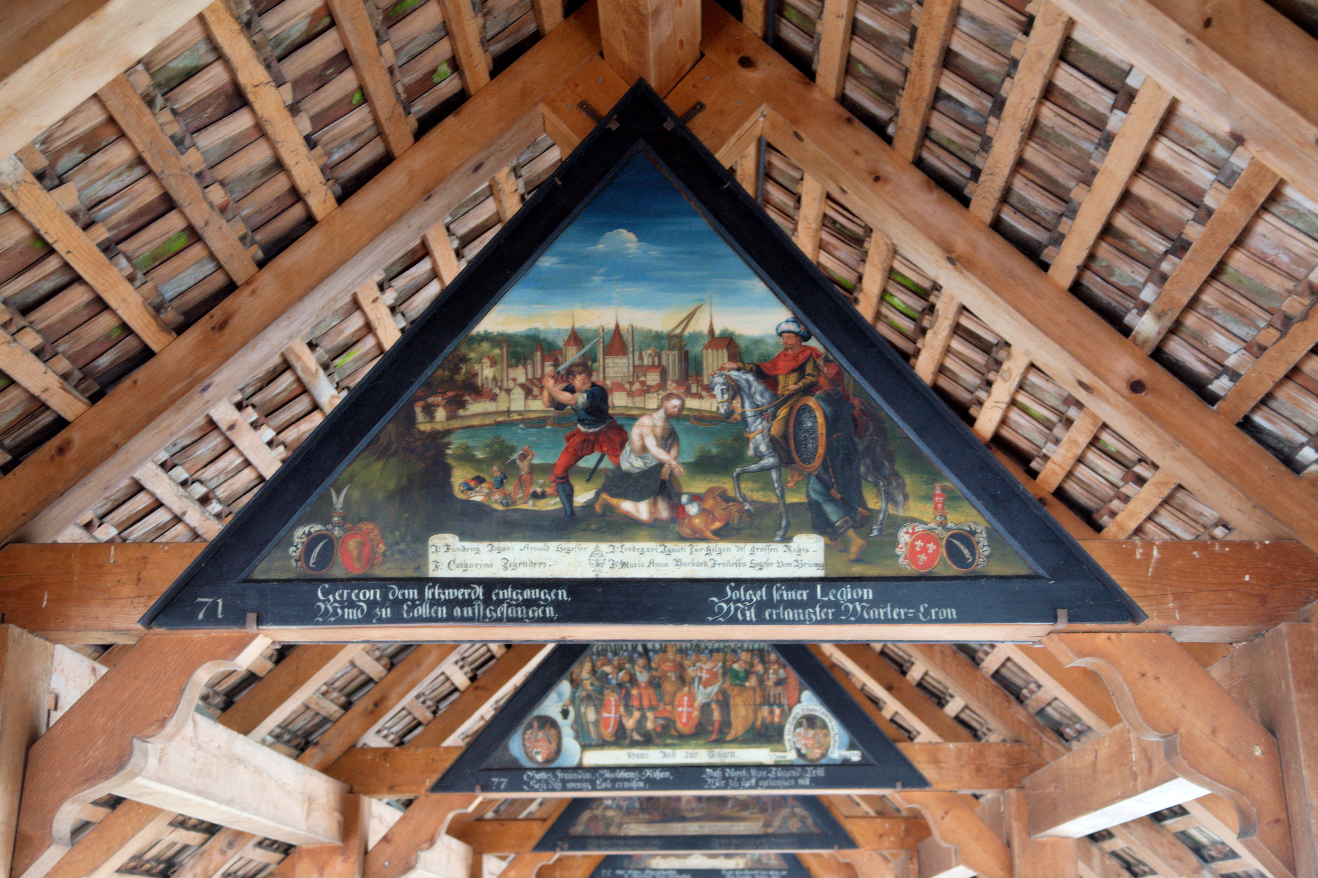 루체른의 카펠교와 슈프로이어교, 그리고 지금은 파괴된 호프교는 유럽의 다른 목조 다리와 달리 내부 삼각형 프레임에 그림이 그려져 있다는 독특한 특징을 가지고 있다.[19] 한스 하인리히 베그만이 17세기에 그린 이 그림들은 루체른의 역사를 담고 있다.