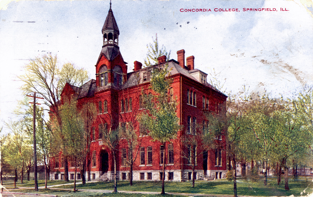 1874년, 실천 신학교의 예비 신학생 29명과 교수 한 명이 일리노이주 스프링필드에 위치한 구 일리노이 주립 대학교 캠퍼스로 이전했다.[4] 이 캠퍼스는 1873년 트리니티 루터교회가 복음주의 루터교 여자 대학 및 사범학교 설립을 위해 매입했지만, 적절한 교수를 구하지 못해 계획이 무산된 곳이었다.[5] 1875년에는 실천 신학교 자체가 스프링필드 캠퍼스로 옮겨왔으며, 학장 F. A. 크레이머와 예비 신학교 교수가 교수로 활동했다. 1876년에는 세 번째 교수가 합류했다.[4]