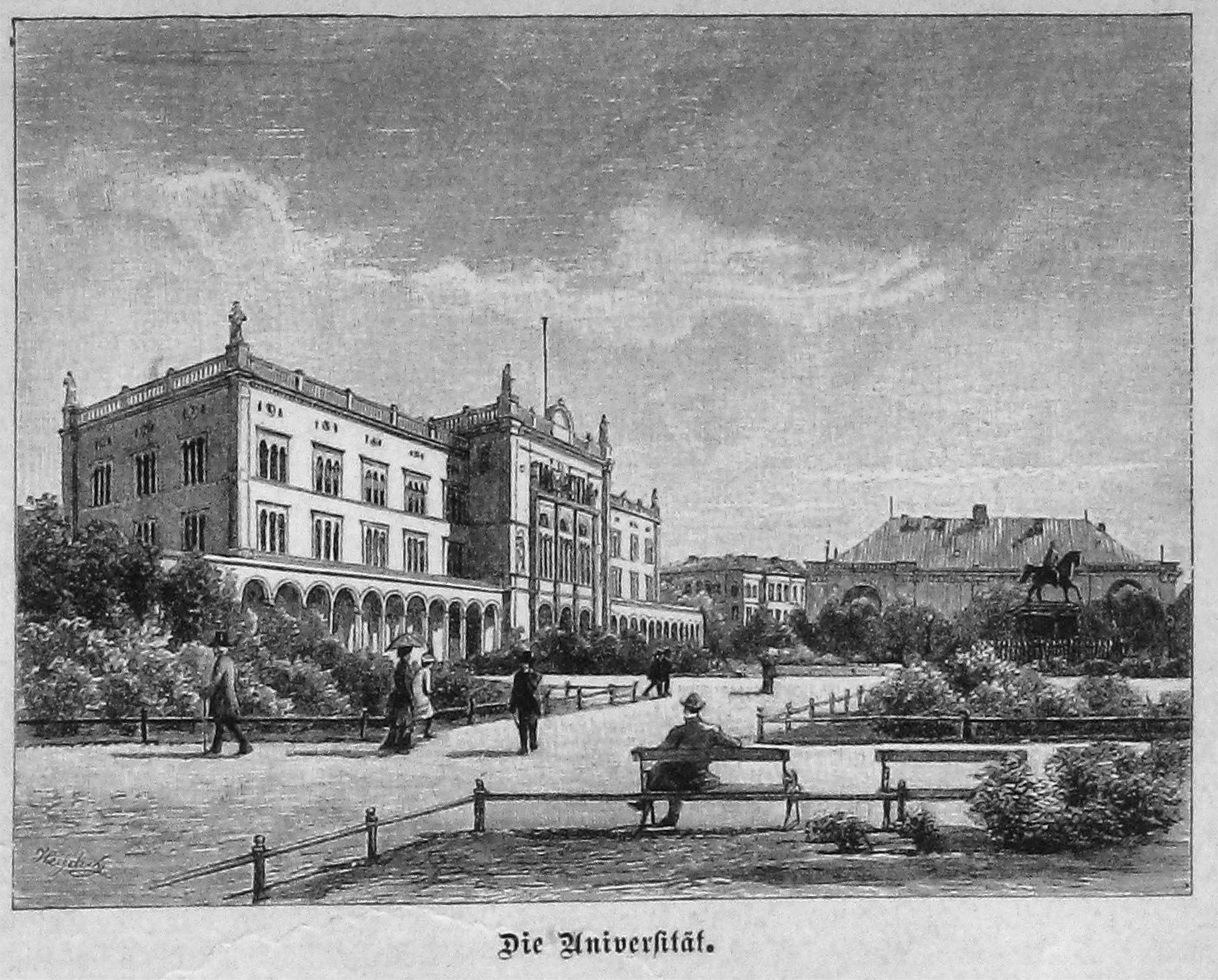 대학 도서관은 1901년 미텔트라카임에 건립되었으며 230,000권 이상의 장서를 보유하고 있다. 드리테 플리스슈트라세에는 1898년에 학생과 시민들 사이에서 더 높은 형태의 스포츠를 장려하기 위해 설립된 팔레스트라 알베르티나가 있었다. 근처에는 휴고 크노어와 막스 슈미트의 벽화로 장식된 관청이 있었다. 1900년에 이 대학의 학생 수는 900명이었다.