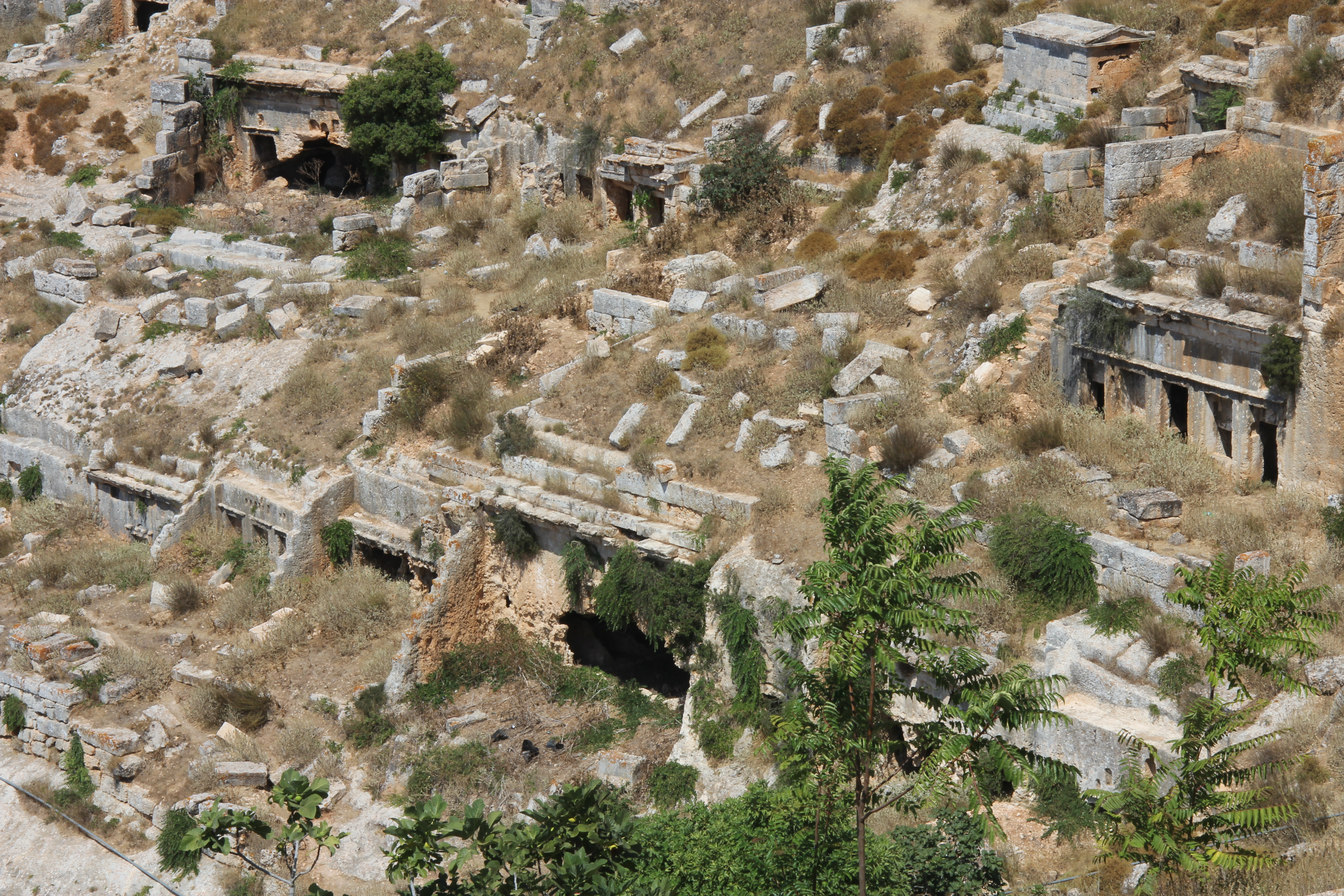 데메테르와 페르세포네 신전은 도시 성벽 밖에 있는 와디 빌 가디르 계곡 남쪽에 있다. 이 신전은 32km(20마일)에 걸쳐 펼쳐진 구조물들로 이루어져 있으며, 하층 신전, 중층 신전, 상층 신전의 세 개의 계단식 구조로 나뉜다.[33] 고고학적 유적은 기원전 7세기 후반부터 서기 3세기 중반까지의 시대를 나타낸다. 신전에서의 신성한 활동 기간 동안, 내부에는 토기, 등잔, 주화, 석조 조각, 보석, 비문, 유리, 그리고 청동과 테라코타(terracotta) 소조(figurine) 등 다량의 봉납품이 축적되었다. 신전에서 발굴된 토기는 신전의 건립과 종교 활동의 유형에 관한 유용한 증거를 제공한다.[34]