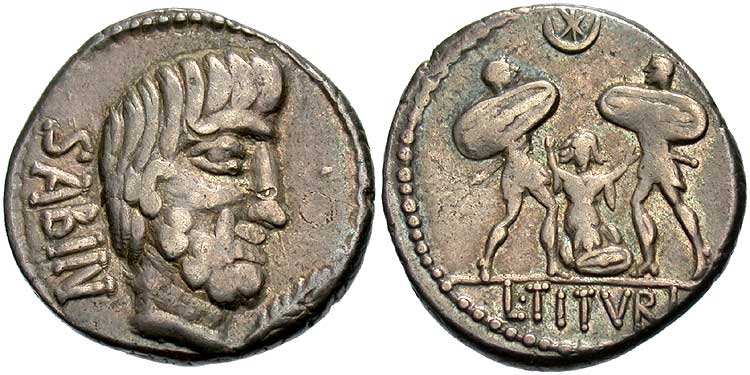 타르페이아의 고문. 로마 공화국 주화 (데나리우스), 기원전 89년