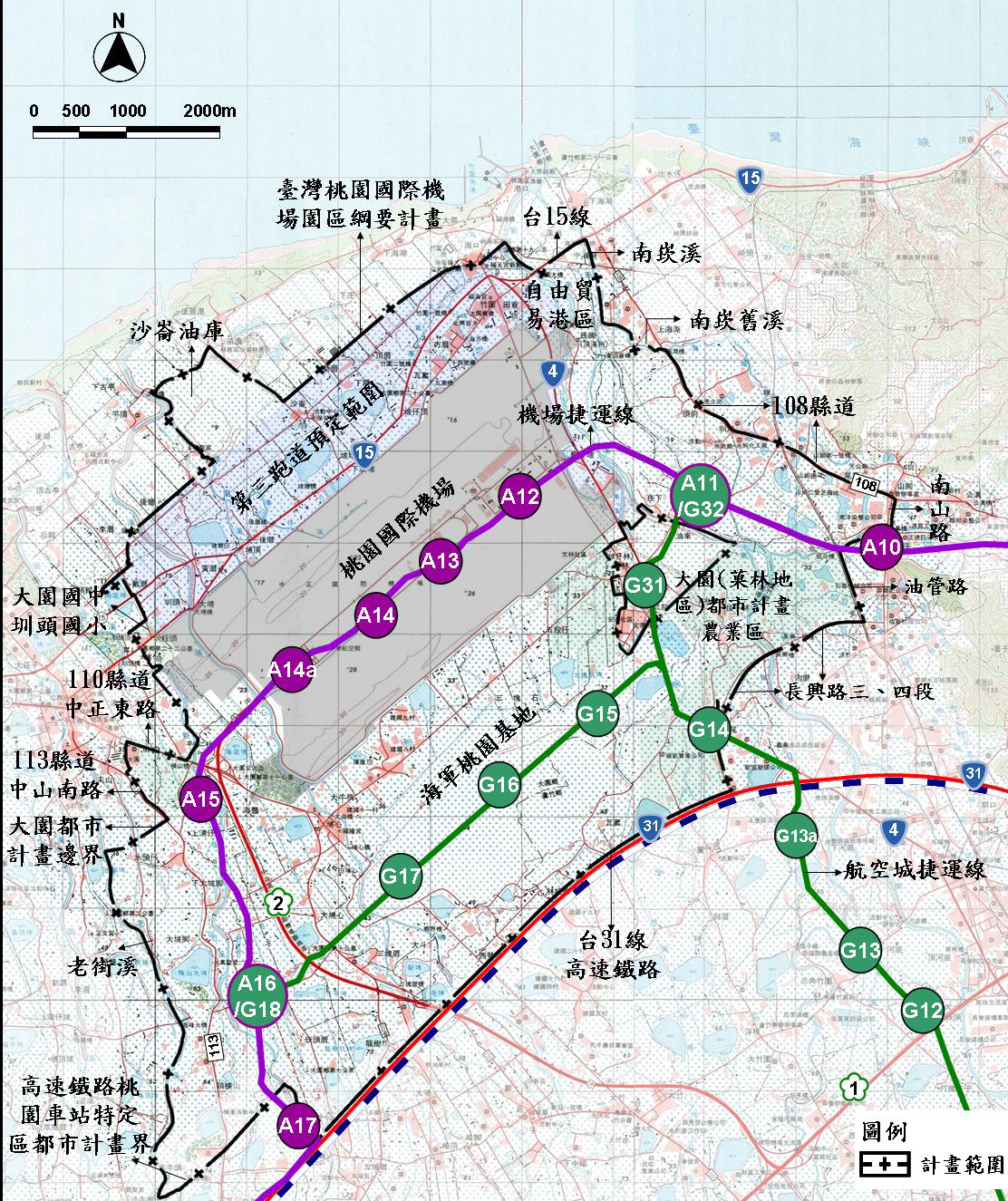 - 2014년: 내정부 도시계획위원회 제832차 회의에서 「잠정 타오위안 국제공항원구 및 부근 지구 특정구획 계획안」을 개정하였다. 같은 해, 「잠정 타오위안 항공성 특정구획 계획」이 내정부에서 승인되었다.[9]