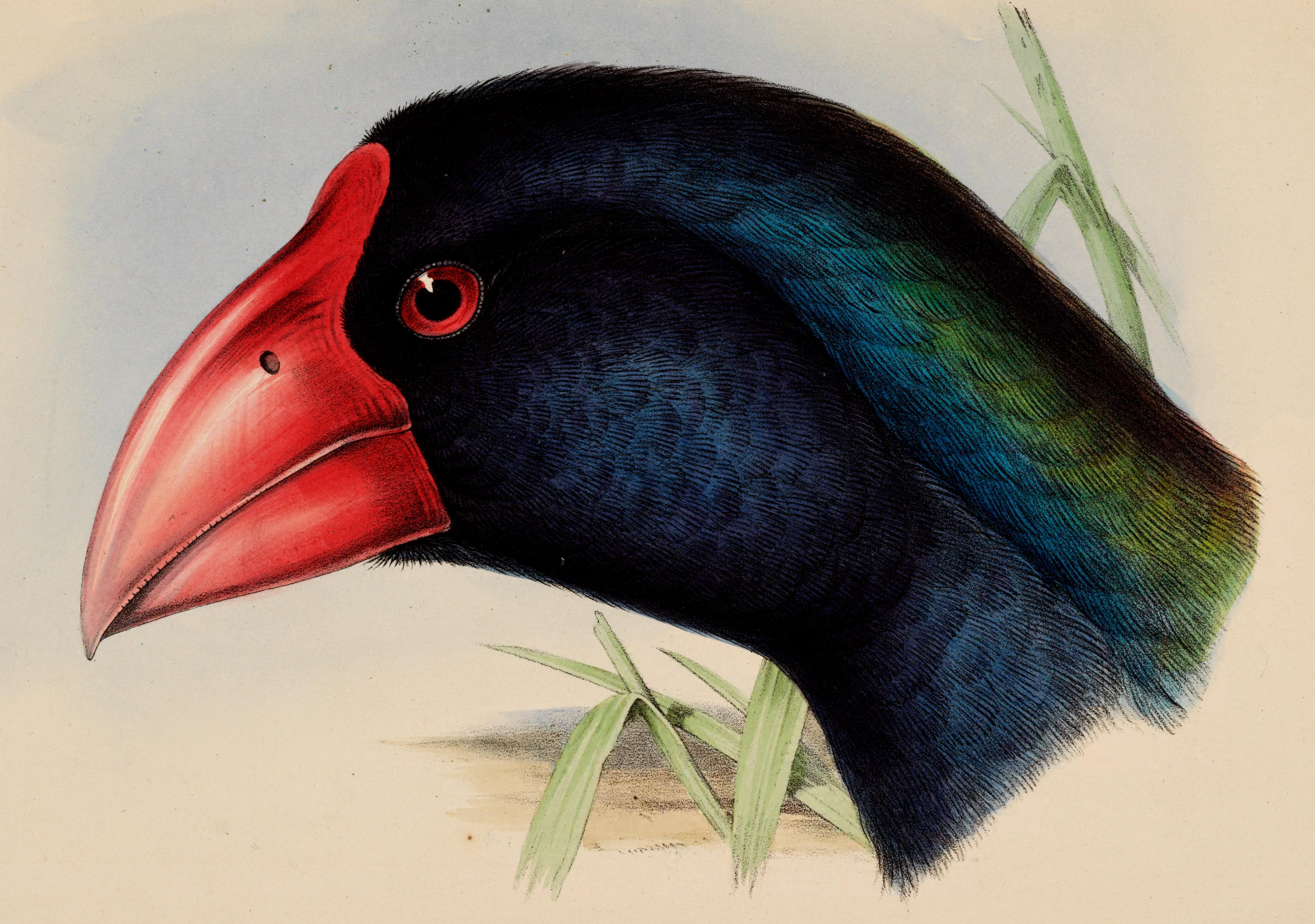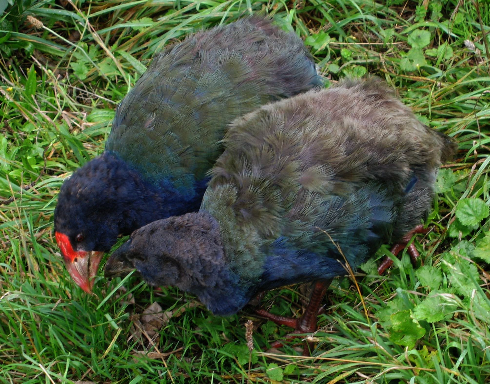 - '''남섬 타카헤'''(''Porphyrio mantelli hochstetteri'')는 뉴질랜드 남섬에 서식하며, 현존하는 뜸부기과 조류 중 가장 크다.
