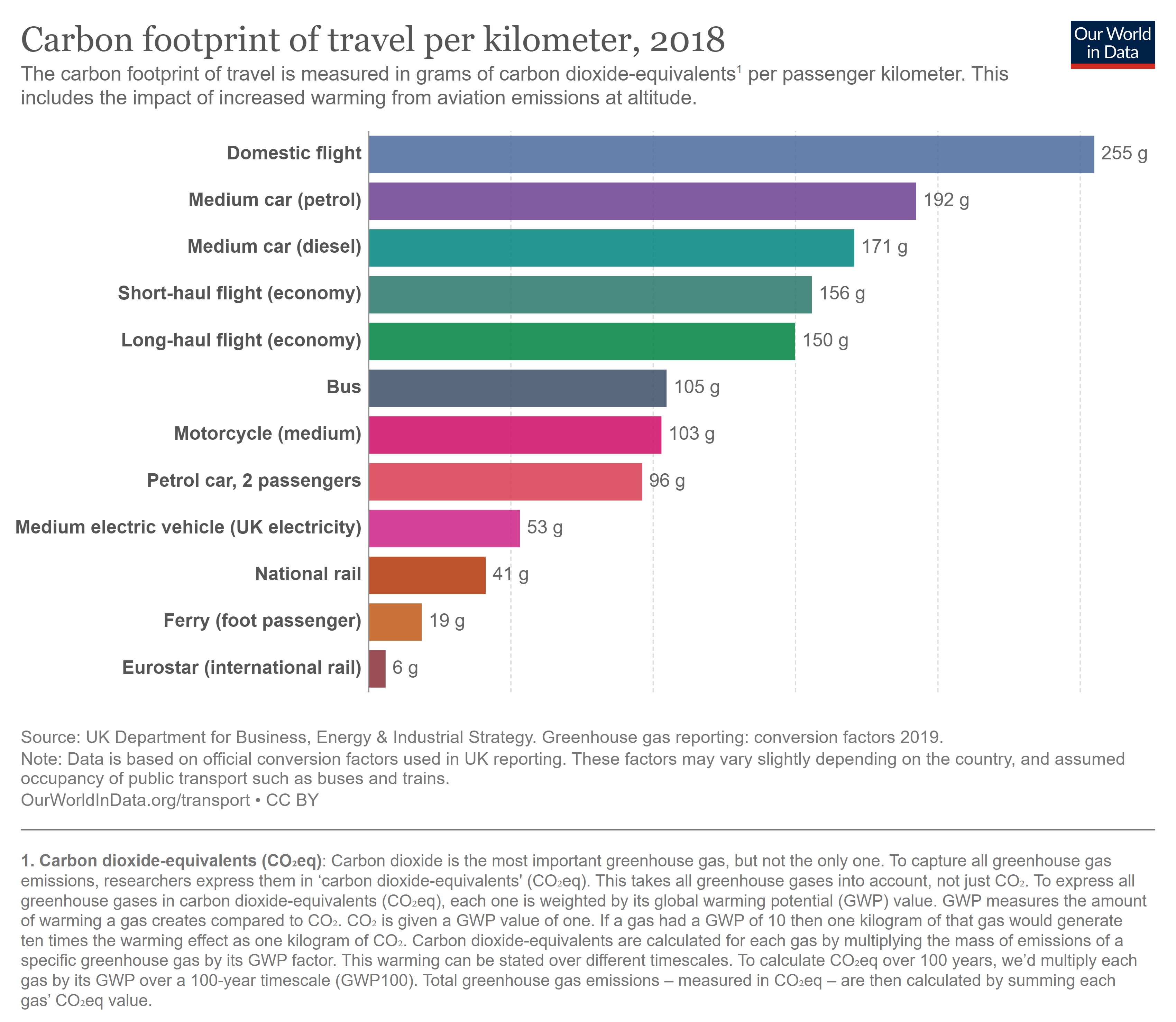 또한, 이산화탄소 배출량을 나타내는 단위로 't-CO2eq'(이산화탄소 환산 톤)를 사용하는데, 이는 지구 온난화 지수(GWP)를 고려하여 다른 온실 가스를 이산화탄소로 환산한 값이므로 실제 배출된 이산화탄소량과는 차이가 있어 주의해야 한다.