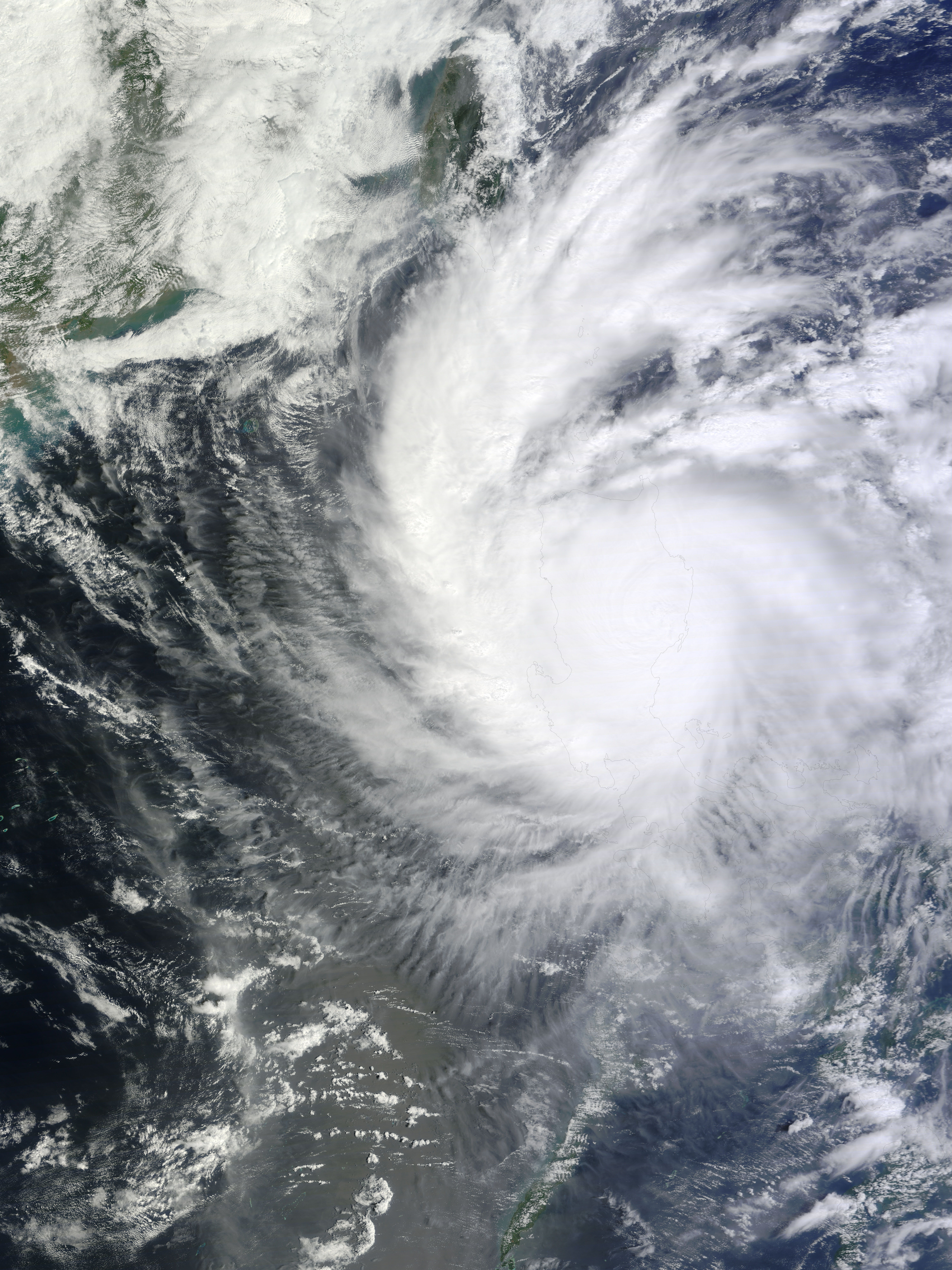 이후에도 발달은 빨라 9월 30일 중심기압 940 hPa, 최대풍속 47 m/s, 강풍반경 350 km의 중형의 매우 강한 태풍으로 발달하였고 일본기상청에서는 10분 최대풍속을 100 kt (50 m/s)로 분석하였고 사피어-심프슨 허리케인 등급 기준으로 4등급의 슈퍼태풍이 되었다. 이 태풍은 강한세력으로 10월 1일 정오 경에 필리핀 루손섬에 상륙하였고 약 8시간 만에 필리핀을 관통하였다. 필리핀을 관통하고 나서 세력은 다소 약화되어 중심기압 965 hPa, 최대풍속 38 m/s, 강풍반경 230 km (10월 2일 오전 4시 기준)이 되었다. 각국 기상청들은 태풍이 남중국해에서 재발달 할 것으로 예상하였으나, 남중국해의 수온이 낮고 북쪽에서 찬 공기가 남하함에 따라 그 세력은 급격히 쇠약해져, 같은날 오후 3시에는 중심기압 975 hPa, 최대풍속 31 m/s, 강풍반경 200 km의 강도 '중'의 태풍으로 약화되었고, 다음날에는 중심기압이 985 hPa로 더욱 높아졌다. 이 태풍은 베트남으로 서진하면서 쇠퇴하여 다음날 오전 4시에는 중심기압 990 hPa, 최대풍속 24 m/s가 되면서 열대폭풍으로 격하되었고 점차 베트남에 가까워 지기 시작하였다. 그러나 태풍의 세력이 약한데다 속도도 느려지고, 태풍이 약화되기 쉬운 조건에 있어서 베트남에 도달하지 못하고 끝내 10월 5일 오전 3시에 베트남 남동쪽 약 350 km 부근 해상, 즉 통킹만에서 중심기압 1004 hPa의 열대저압부로 약화되었다.