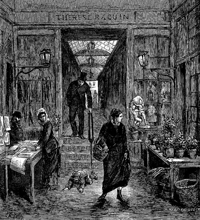 테레즈 라캥은 프랑스 해군 선장과 알제리 출신 어머니 사이에서 태어났다. 어머니가 죽은 후, 아버지는 그녀를 숙모인 마담 라캥과 건강이 좋지 않은 아들 카미유와 함께 살게 했다. 카미유와 테레즈는 함께 자랐고, 테레즈가 21세가 되자 마담 라캥은 그들을 결혼시켰다. 얼마 지나지 않아 카미유는 직업을 구하기 위해 가족이 파리로 이사해야 한다고 결정했다.