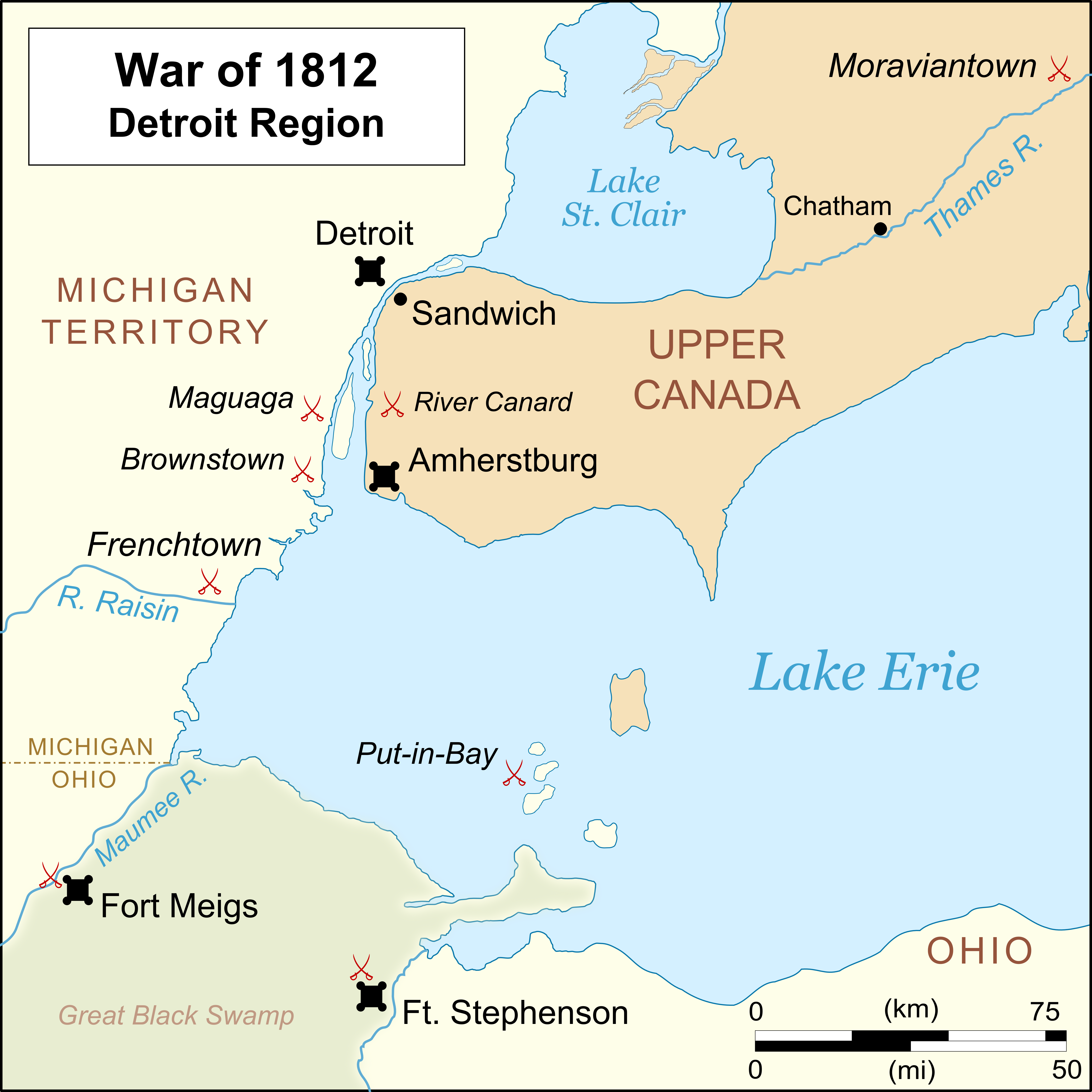 테쿰세 일행은 영국군과 함께 디트로이트를 공략하는 등 전과를 올렸다. 그러나 올리버 해저드 페리가 이끄는 미국군이 이리호 해전에서 승리하면서 영국 측은 보급선이 끊기고 고전했다. 게다가 영국군 사령관이 전사하고 테쿰세에게 협조적이지 않은 헨리 프로크터(Henry Procter)가 후임으로 임명되면서, 테쿰세 일행은 영국의 후원을 잃고 힘겨운 싸움을 해야 했다.