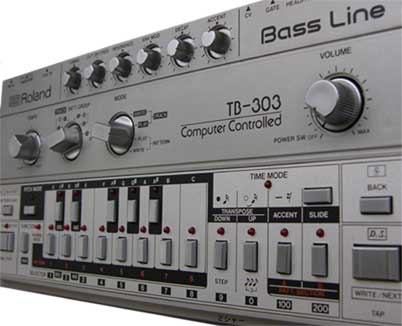 롤랜드 TB-303: 애시드 하우스에서 두드러지게 사용된 베이스 라인 신시사이저이다.