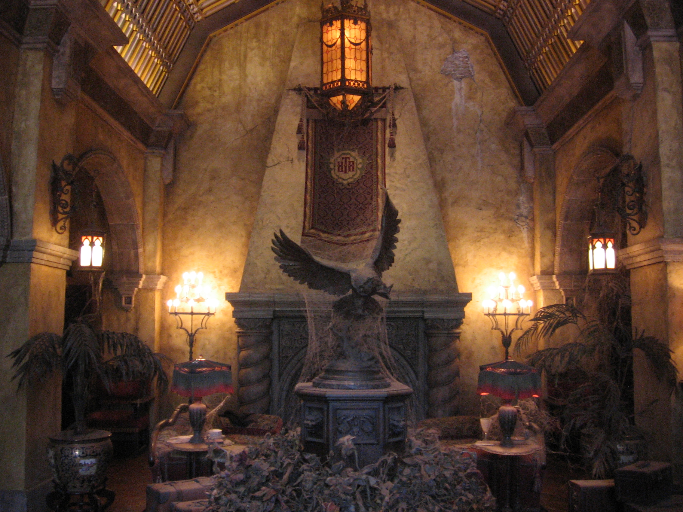 이 놀이기구의 스토리라인은 미국과 프랑스 버전보다 더 복잡하다. 이 시나리오는 호텔의 유명한 건축가이자 소유주인 해리슨 하이터워 III세(조 로드를 모델로 함)의 모험을 다루고 있는데, 그는 세계 곳곳으로 탐험을 다니며 수천 점의 귀중한 유물을 수집했다.[10] 이 유물들 중 대부분은 개인적인 이득을 위해 훔쳐진 것이었고, 그의 호텔에 보관되었다. 그중 하나는 하이터워가 아프리카 탐험에서 가져온 우상 시리키 우툰두였다. 하이터워는 원주민들이 그들의 사랑하는 신을 빼앗긴 것에 분노하여 그 우상이 그를 저주할 것이라고 위협했다고 주장했다.1899년 새해 전야, 하이터워는 아프리카 탐험에 대한 기자 회견을 열고 파티를 열었다. 그는 그 우상을 어떻게 얻었는지 자랑하며 저주받았다는 주장을 부인했다. 파티를 떠나면서 그는 우상의 머리를 시가를 끄는 데 사용하며 조롱했다. 자정이 다가오자 그는 호텔 펜트하우스에 있는 자신의 개인 아파트로 가기 위해 엘리베이터에 탑승했다. 엘리베이터가 꼭대기에 가까워지자 우상이 살아났다. 우상의 분노와 힘은 엘리베이터를 추락시켜 1층에 충돌하게 만들었고, 그 안에는 하이터워가 있었다. 문이 강제로 열렸을 때 그의 모자와 우상만 발견되었다. 호텔은 갑자기 문을 닫고 10년 넘게 폐쇄되었으며, 지역 주민들 사이에서는 유령이 출몰한다는 소문이 돌았다. 1912년, 호텔을 철거하라는 압력 끝에 뉴욕의 복원 회사가 역사적 중요성 때문에 호텔을 재개장하고 유료 투어를 제공하기 시작했다. 손님들은 호텔에 입장하면 이 "투어"에 참여하게 된다.