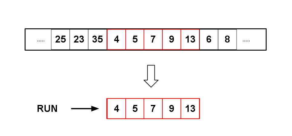 정렬된 런을 병합하는 방식은 고정 크기의 하위 목록을 병합하는 전통적인 병합 정렬 방식보다 전체 목록을 정렬하는 데 필요한 총 비교 횟수를 줄이는 장점이 있다.