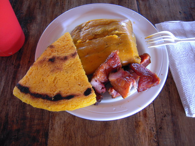 - 볼로 (Bollo) - 나우알라 야자 잎,[3] 옥수수 껍질 또는 플랜테인 잎으로 싸서 삶은 옥수수 반죽이다. 신선한 옥수수 볼로(볼로스 데 마이즈 누에보)와 건조 옥수수 볼로 두 가지 종류가 있다. 건조 옥수수는 버터, 옥수수 또는 쇠고기로 맛을 낸 경우가 있으며, 이를 볼로 "프레냐도"(문자 그대로 "임신한 볼로")라고 한다. 볼로는 일종의 타말레로 묘사되었다.[4][5]