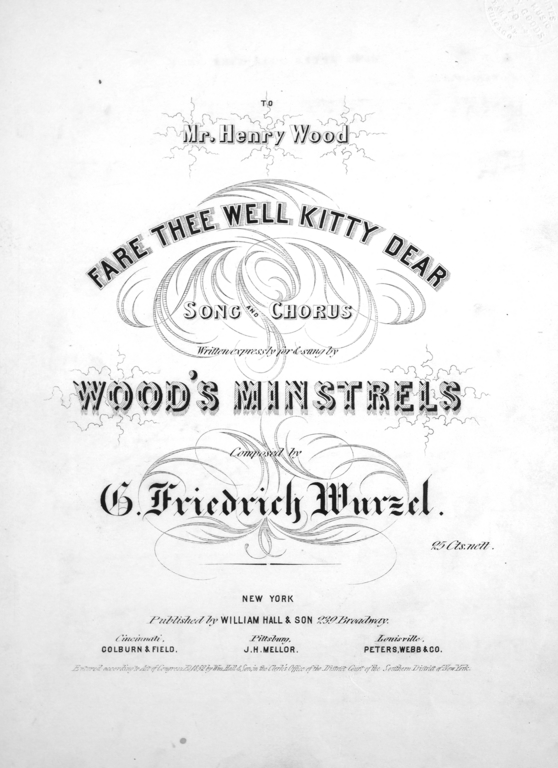 1851년 여름, 루트와 크로스비는 매사추세츠주 노스 리딩에 있는 노스 리딩 음악 연구소에서 함께 가르쳤다.[43] 이들의 첫 번째 노래는 "안녕, 키티야"(1851)로, 남부 이미지를 연상시키는 곡이었다.[43] 크로스비의 가사는 루트의 제안에 기초했으며, "사랑하는 사람의 죽음에 대한 흑인의 슬픔"을 묘사했다.[43] 이 곡은 헨리 우드의 민스트럴을 위해 쓰였고 그들이 독점적으로 공연했다.[43] 그러나 이 노래는 크게 히트하지 못했다.[43] 1852년, 루트는 윌리엄 홀 앤 선과 3년 계약을 맺었다.[43]