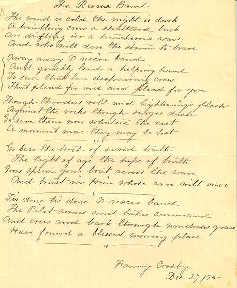 맹인 패니 크로스비, 그녀가 노래한 것은...
