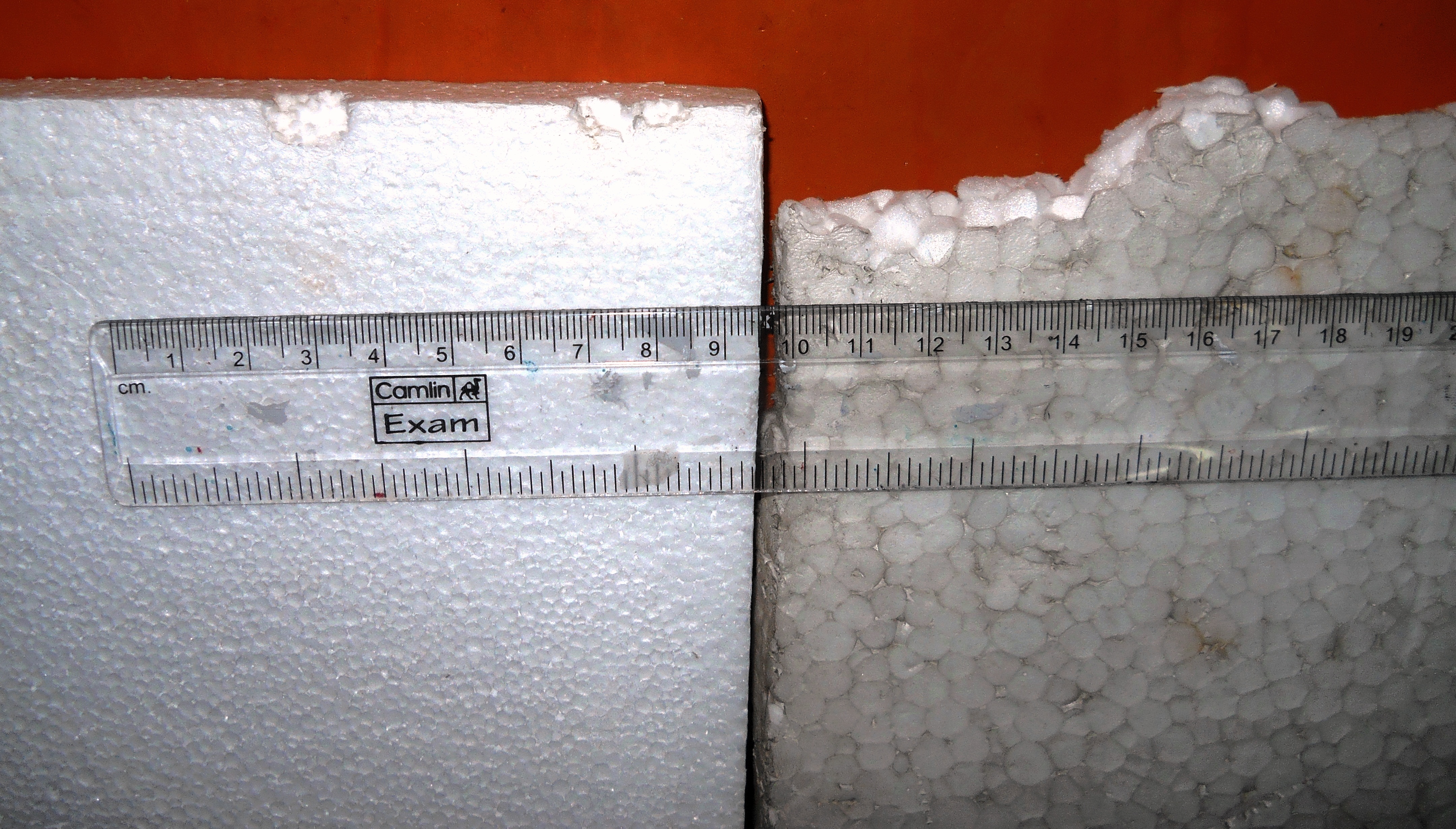 발포 폴리스타이렌(Expanded Polystyrene, EPS)은 일반적인 밀도 범위가 11~32 kg/m3인 단단하고 질긴 폐쇄 셀 폼이다.[45] 보통 흰색이며 미리 팽창된 폴리스타이렌 비드로 만들어진다. EPS는 음식 용기, 건축 단열재용 성형 시트, 포장재 등으로 사용된다. 또한 오토바이 헬멧 및 자동차 경주 트랙의 도로 장벽과 같은 자동차 및 도로 안전 분야에서 널리 사용된다.[47][48][49]