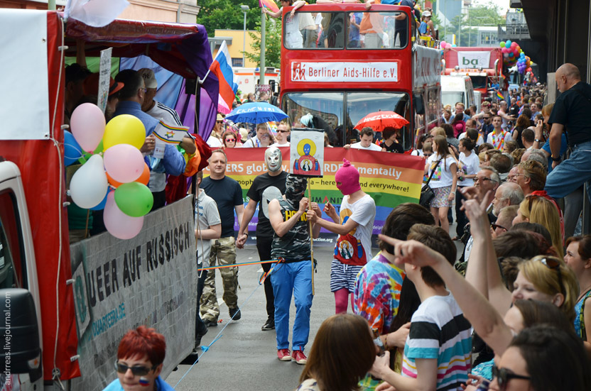 2020년 10월 7일에는 푸틴 대통령의 생일을 맞아 러시아 주요 정부 시설에 무지개 깃발을 설치하며 LGBT 권리를 옹호하고 러시아 정부의 동성애 혐오 정책에 항의했다.[392]
