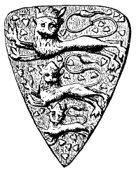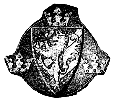 방패 | 적색 바탕에 은색 장미 아홉 송이가 흩뿌려져 있고, 금색 왕관을 쓴 금색 사자가 은색 칼을 밟고 서 있으며, 갑옷을 입은 팔이 금색으로 장식된 은색 칼을 들고 있음 |