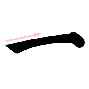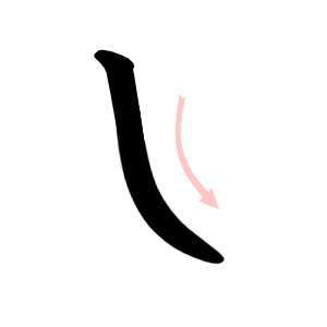시계 방향 곡선 | Wān, | Wān, | (Hidari) Sori, (左)反일본어 | Cong 𢏣 | |25px]]||"곡선"||가늘어지는 곡선, 일반적으로 왼쪽으로 오목함 (오른쪽으로 볼록). | ||