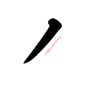 누르기 | Nà, 捺중국어 | Nà, 捺중국어 | (Migi) Harai, (右)払일본어 | Mác 莫 | |25px]]||"누르기" ("(오른쪽) 쓸기")||오른쪽으로 떨어지기 (아래쪽이 두꺼워짐). | ||