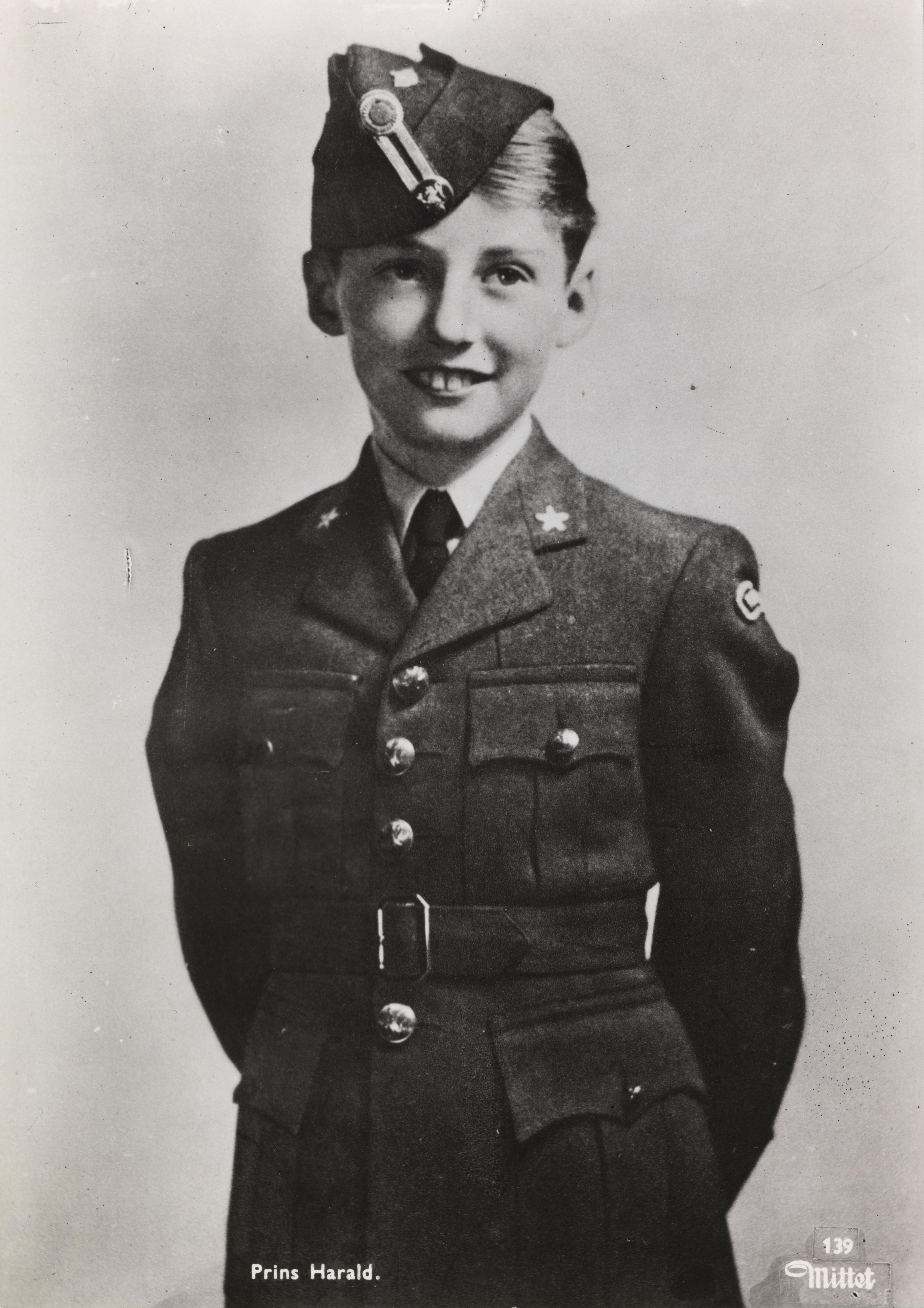 하랄 왕세자는 미국에서 훈련받는 노르웨이 군인들을 방문했고, 캐나다 온타리오에 있는 훈련 기지 "리틀 노르웨이"에서 노르웨이 인들을 방문하기도 했다. 1943년부터 화이트 홀 컨트리 스쿨에 다녔다. 1945년 전쟁이 끝날 때 가족과 함께 노르웨이로 귀환했다.