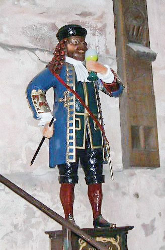 건물 입구 위에는 천사상이 걸려 있다. 이는 관의 주인의 표식이며, 후세 사람들에게 그것을 전하기 위한 것으로 추측된다. 전승에 따르면 이 두 천사는 건설 작업 중에 발판에서 떨어져 목숨을 잃은 건축가의 아들을 모델로 했다고 한다. 이 때문에 건축가는 우울증에 걸려 건설이 난관에 부딪혔다고 한다.[14]