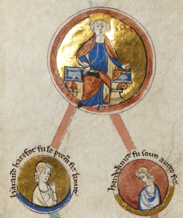 크누틀링가 사가''(Knýtlinga saga, 13세기)는 해럴드 하레푸트를 크누트와 노르망디의 엠마의 맏아들로 여기지만, 저자는 종종 가족 관계를 잘못 묘사한다.