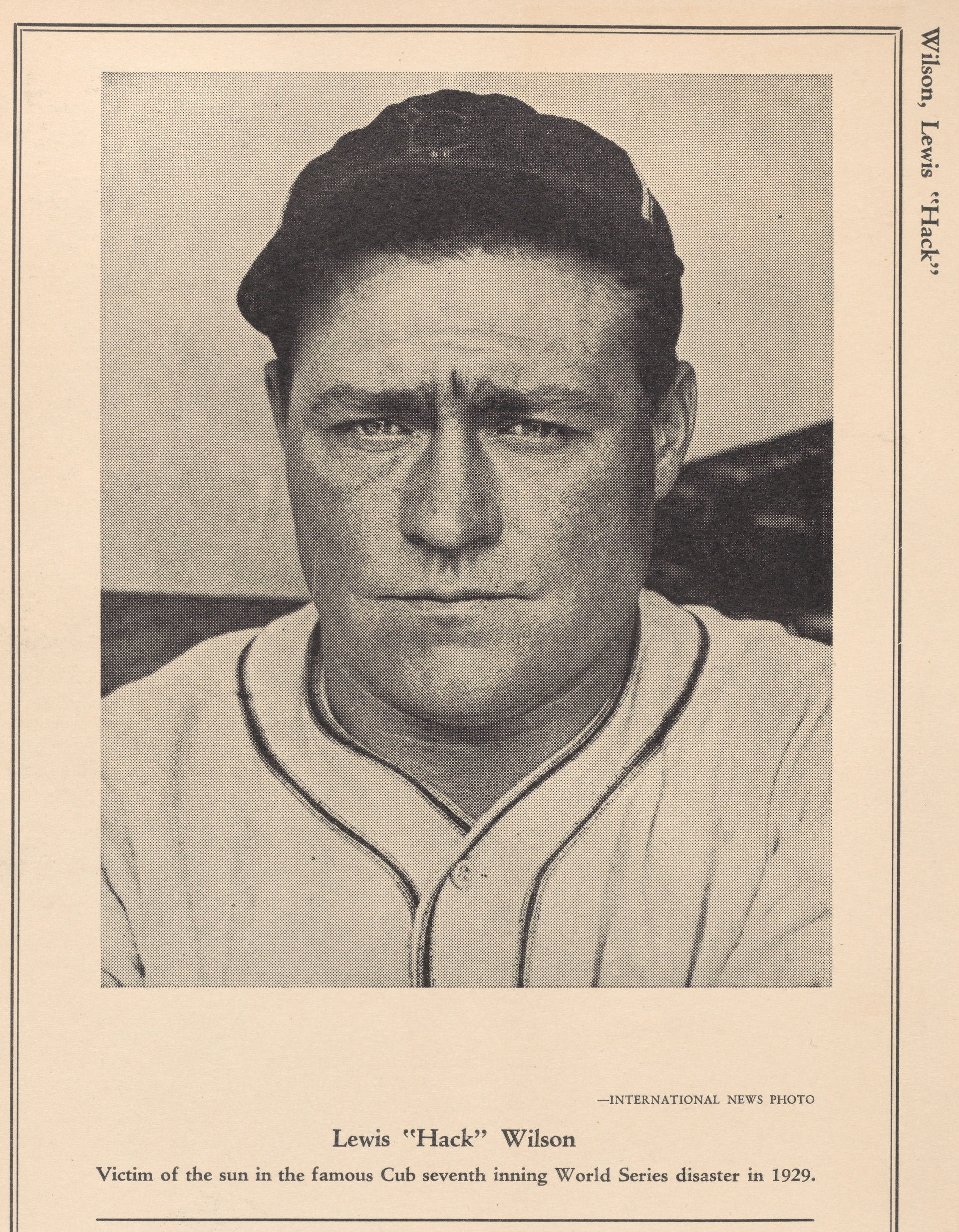 핵 윌슨은 위스키를 마시는 것, 큰 망치로 못을 박는 것, 홈런으로 주자를 불러들이는 것 등 모든 일을 정말 잘했다. 빌 빅은 윌슨을 '어깨에는 옷걸이가 들어있고 위장에는 수박이 들어있는 것처럼 이상하리만치 땅딸막한 통처럼 생긴 사람'이라고 묘사했다.[67] 88kg의 윌슨은 1930년 메이저 리그 역대 최고 기록인 190타점을 기록했고, 1926년부터 1930년까지 177개의 홈런과 707타점을 올렸다. 그는 10대에 기관차 회사에서 일하며 발달된 상체 근육으로 엄청난 힘을 발휘했다. 하지만 알코올 문제로 선수 생활을 짧게 마감해야 했다.[67]