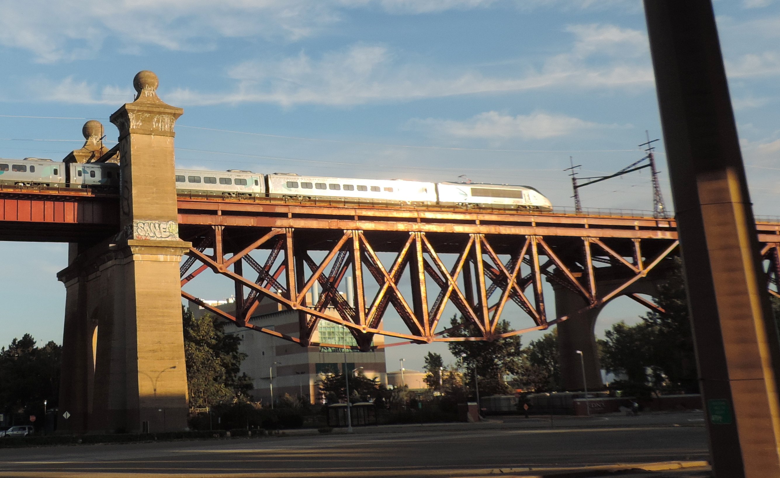 헬 게이트 아치 높이 때문에 롱아일랜드 시티와 포트 모리스 사이 철로는 고가교 위에 설치해야 했다. 이 고가교는 양 끝의 작은 구간을 제외하고는 거의 전부 강철과 콘크리트로 이루어져 있으며, 이 구간에서는 철로가 제방과 옹벽으로 지지된다. 강철 고가교는 약 150개의 콘크리트 교각 위에 설치되었다. 여객 및 화물 트랙은 고가교 끝 부분을 지나 퀸스 서부에서 분기된다.[55]