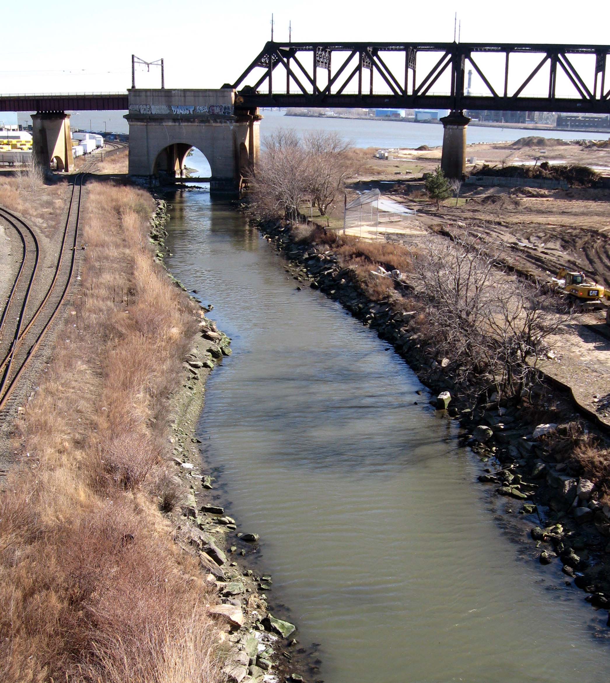 헬 게이트 다리의 브롱스 킬 경간. 브롱스 킬은 경간의 왼쪽으로 뻗어 있는 모습이 보인다.