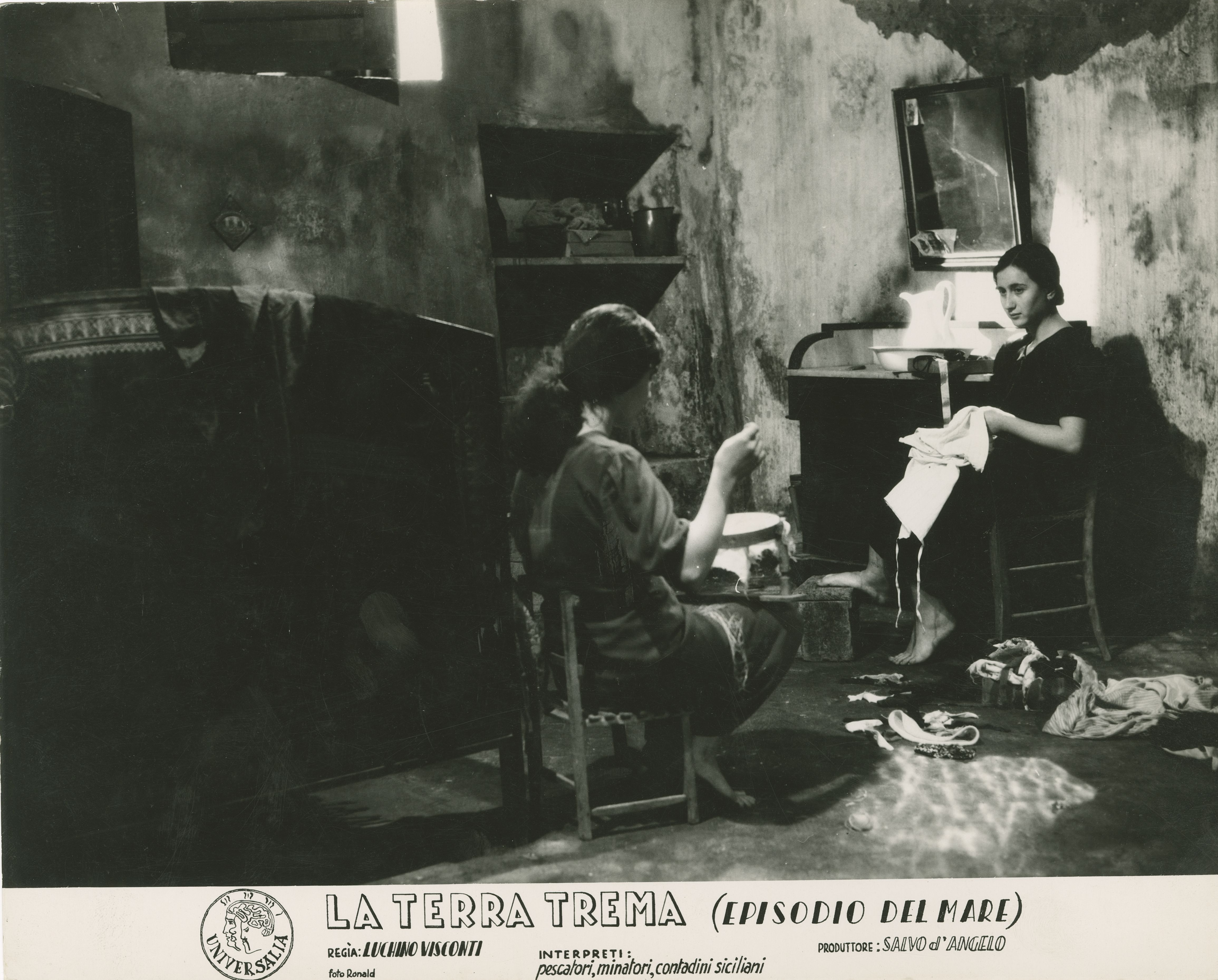1940년대 루키노 비스콘티제2차 세계 대전과 그 영향에 대한 자신의 감정을 표현하기 위해 픽션을 사용했다. 비스콘티의 작품은 확고한 서사 구조와 깊은 휴머니즘을 결합한 특징을 보였다. 그는 소설과 희곡을 썼지만, 결국 자신의 창의적인 에너지를 연극 제작과 영화에 쏟기로 결정했다. 이탈리아 공산당은 연극계에서 명성을 쌓아가던 비스콘티에게 1948년 선거 운동에서 선전용으로 사용할 어부들에 관한 다큐멘터리 영화를 제작하도록 의뢰했다. 비스콘티는 이 기회를 이용하여 1941년에 영화 판권을 확보했던 조반니 베르가의 소설 《말라보리아》(1881년 《무화과나무 집》)를 각색하는 오랜 소망을 이루었다.