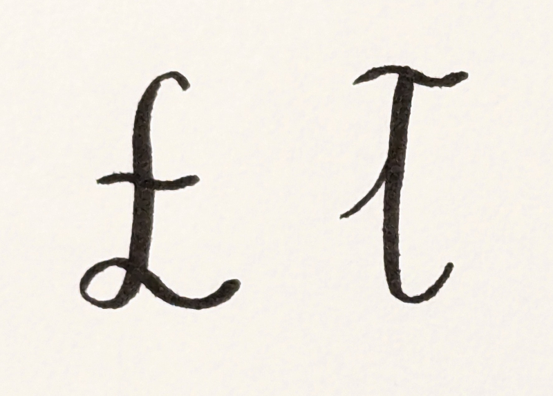 일반적인 서체에서 Ł는 세로 줄기 중간쯤에 70°에서 45° 사이의 각도로 가로지르는 획을 가진다.[1] 필기체에서는 대문자의 획이 수평으로 그어져 파운드 기호(£)와 매우 유사하게 보인다. 필기체 소문자의 획은 수평으로 글자 위에 위치하여, t와 구별된다.[1] 획은 스타일에 따라 직선이거나 약간 물결 모양이다. l영어과 달리, łpl는 일반적으로 상단에 눈에 띄는 고리 없이 쓰인다.[1]