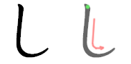 한 획으로 이루어져 있으며, 위에서 아래로 곡선을 그리며 내려쓴다.